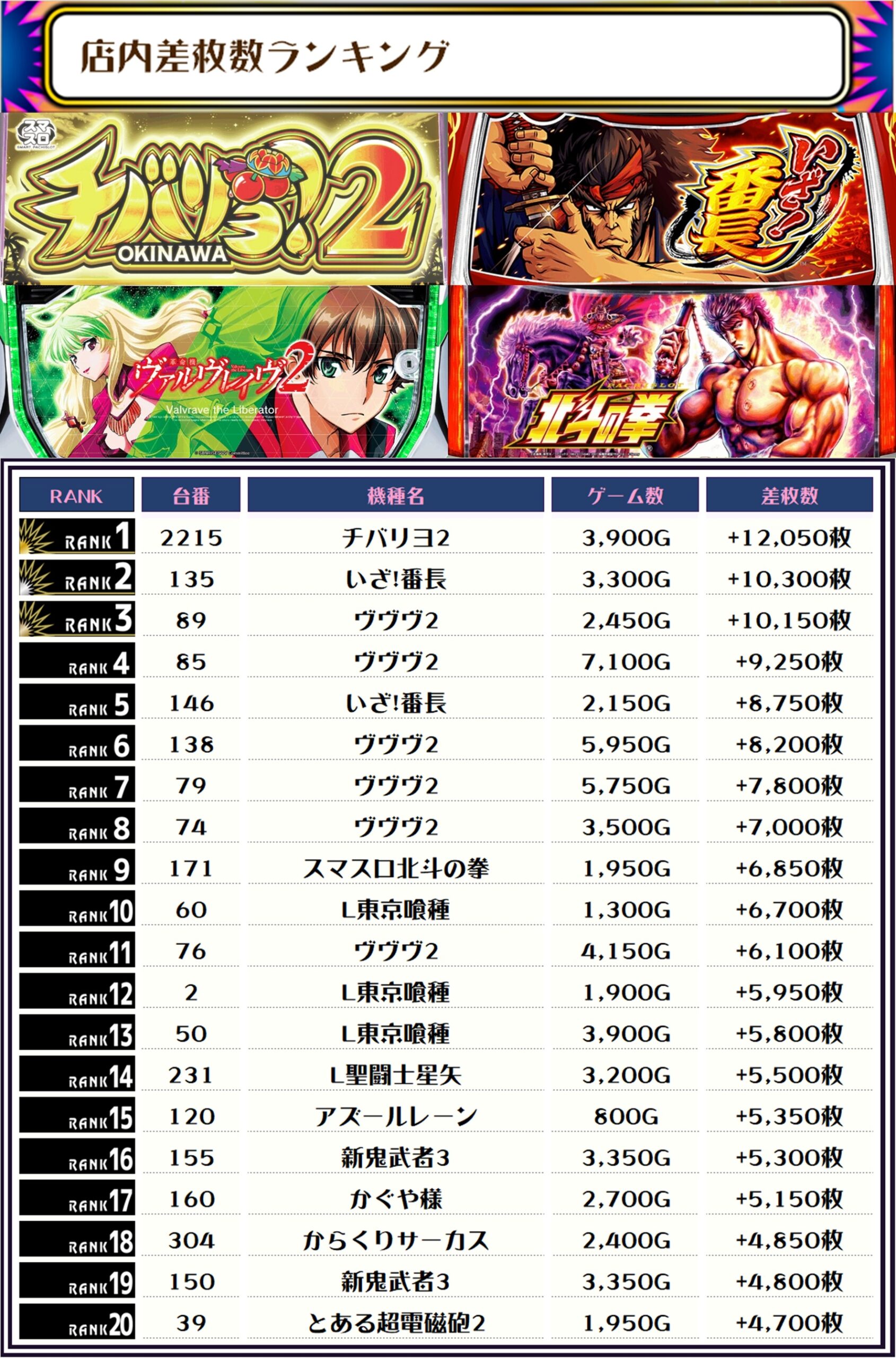 2位には【いざ!番長・135番台】の+10,300枚、そして3位には【ヴヴヴ2・89番台】の+10,150枚がランクインしましたーっ🏆🏆🏆
