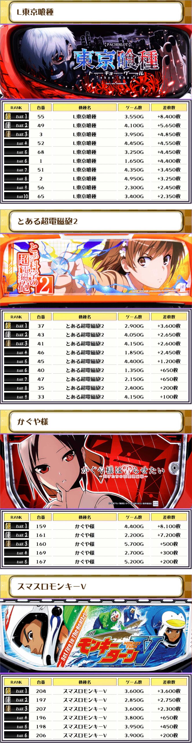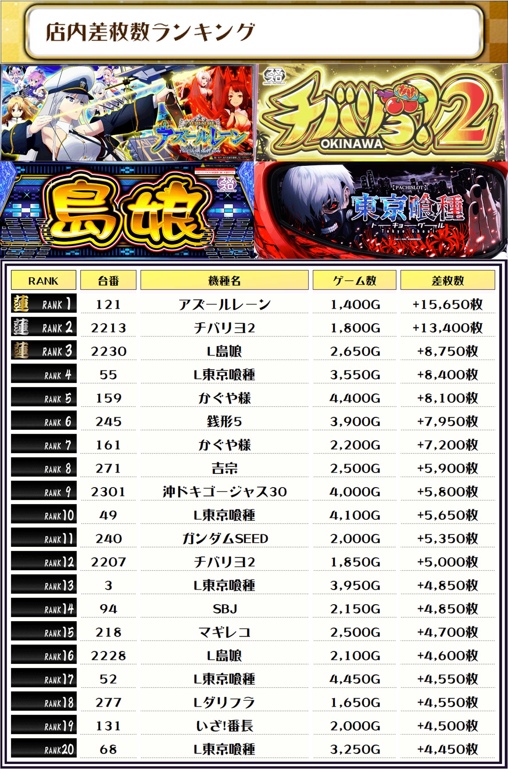 そして、全体の差枚ランキングです❗️