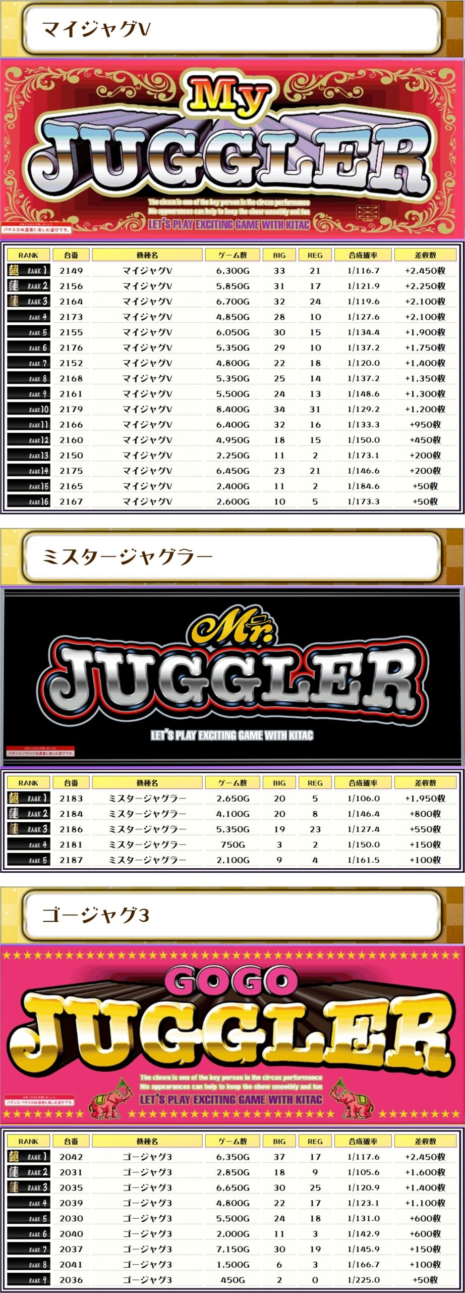 その他の機種の差枚はコチラ❗️