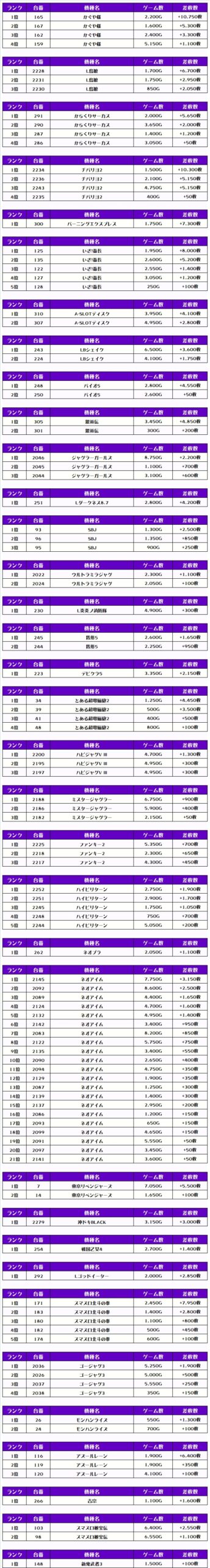 次にこの日の【機種別差枚ランキング】を見ていきましょう💪