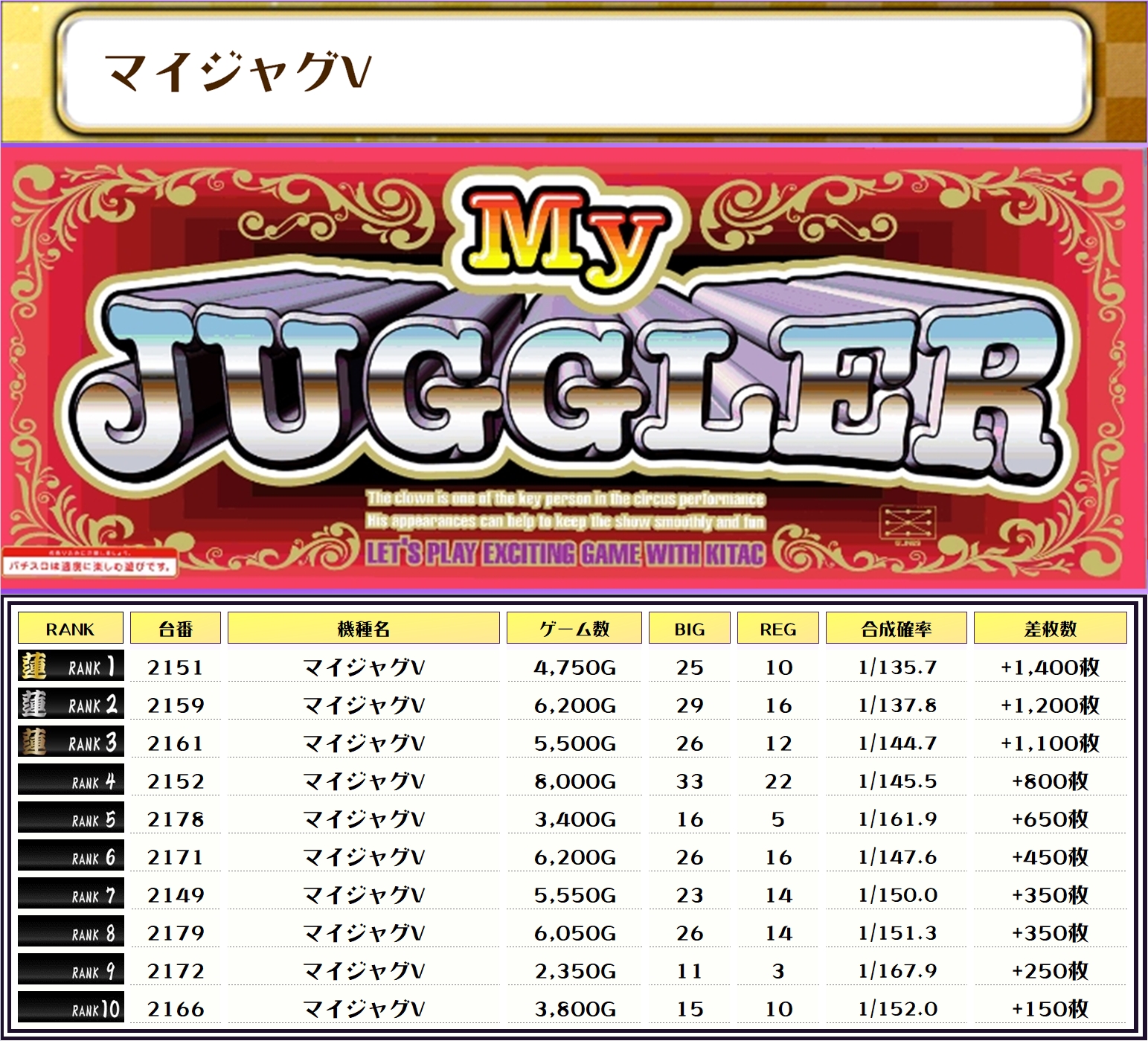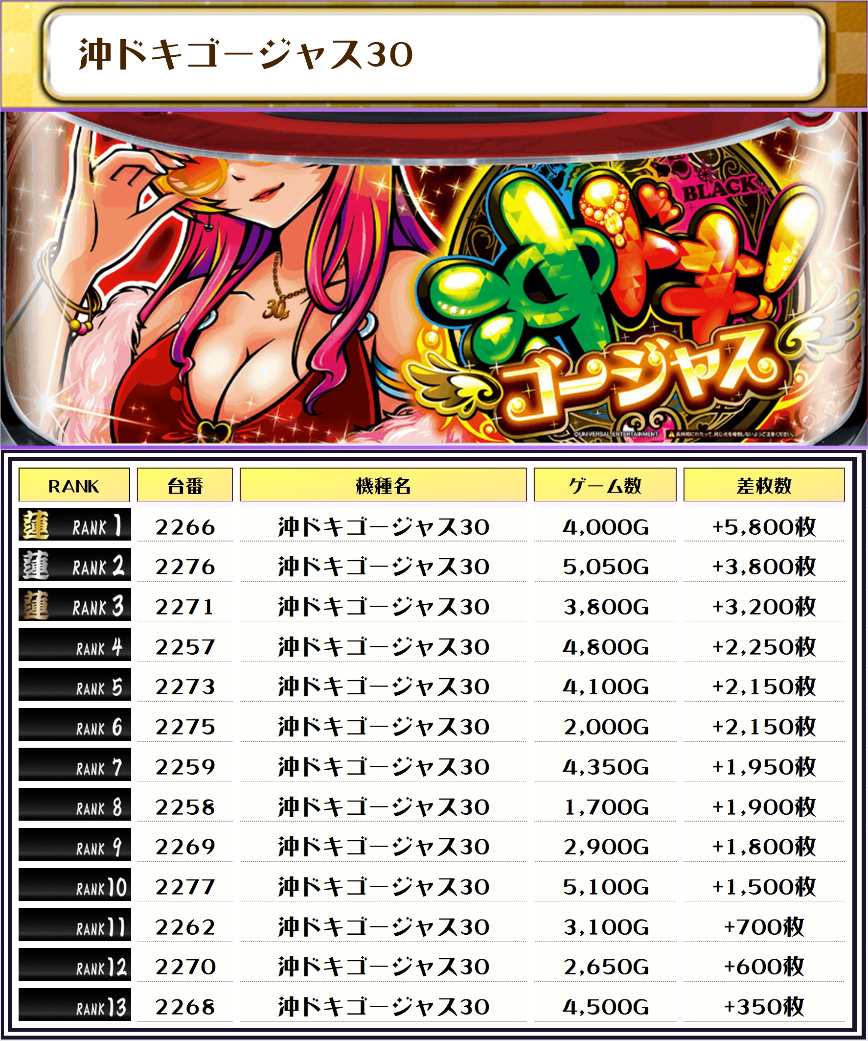 そして、全体の差枚ランキングです❗️