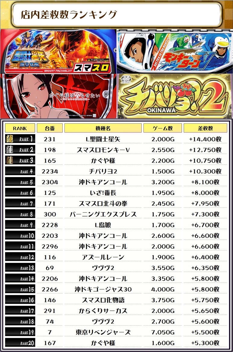 そして、全体の差枚ランキングです❗️