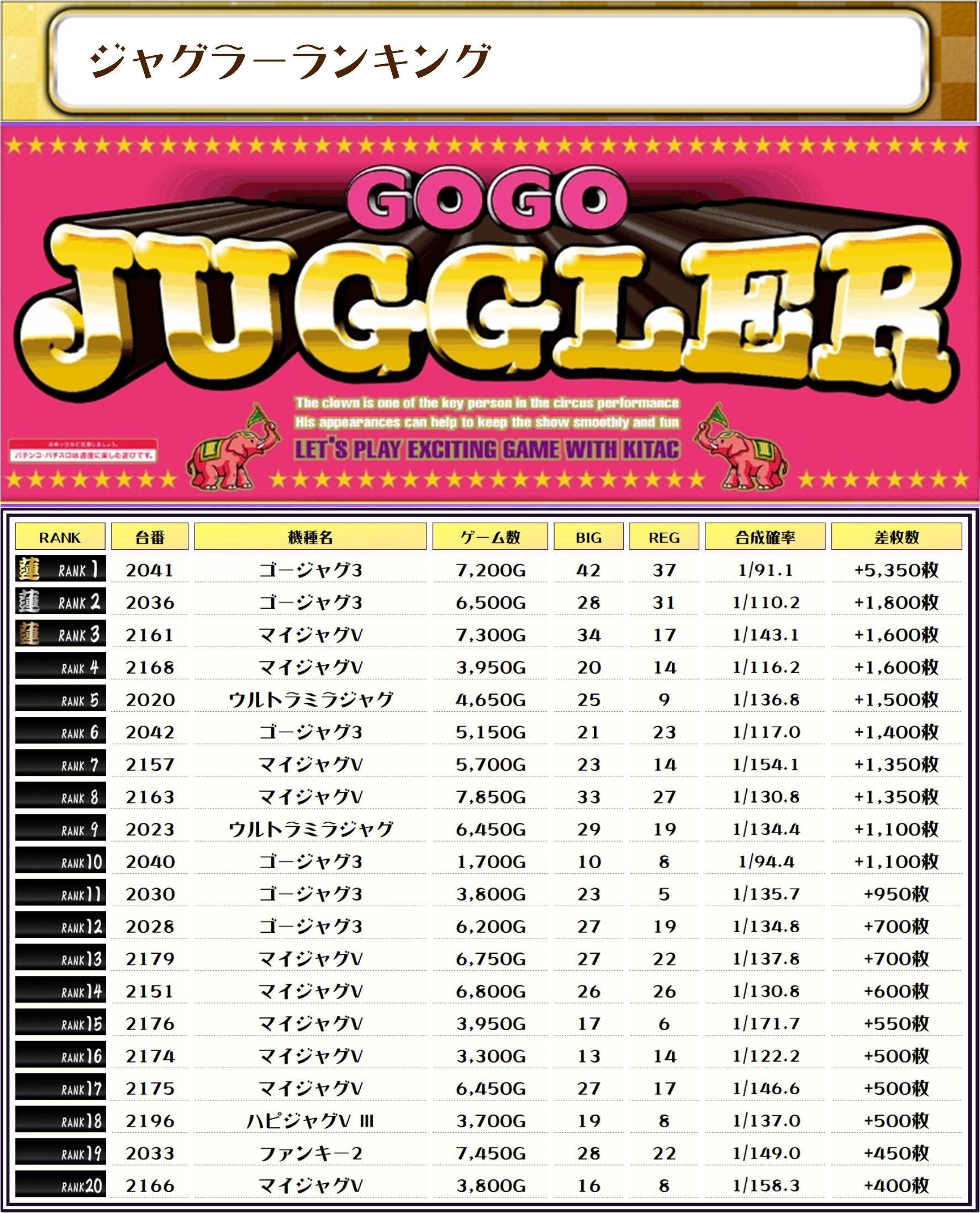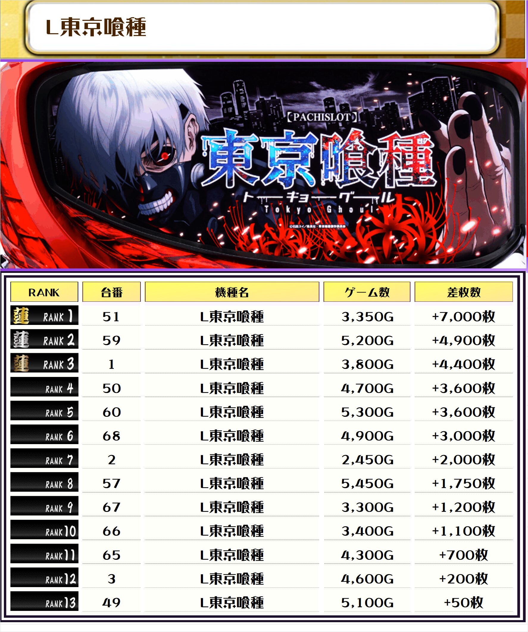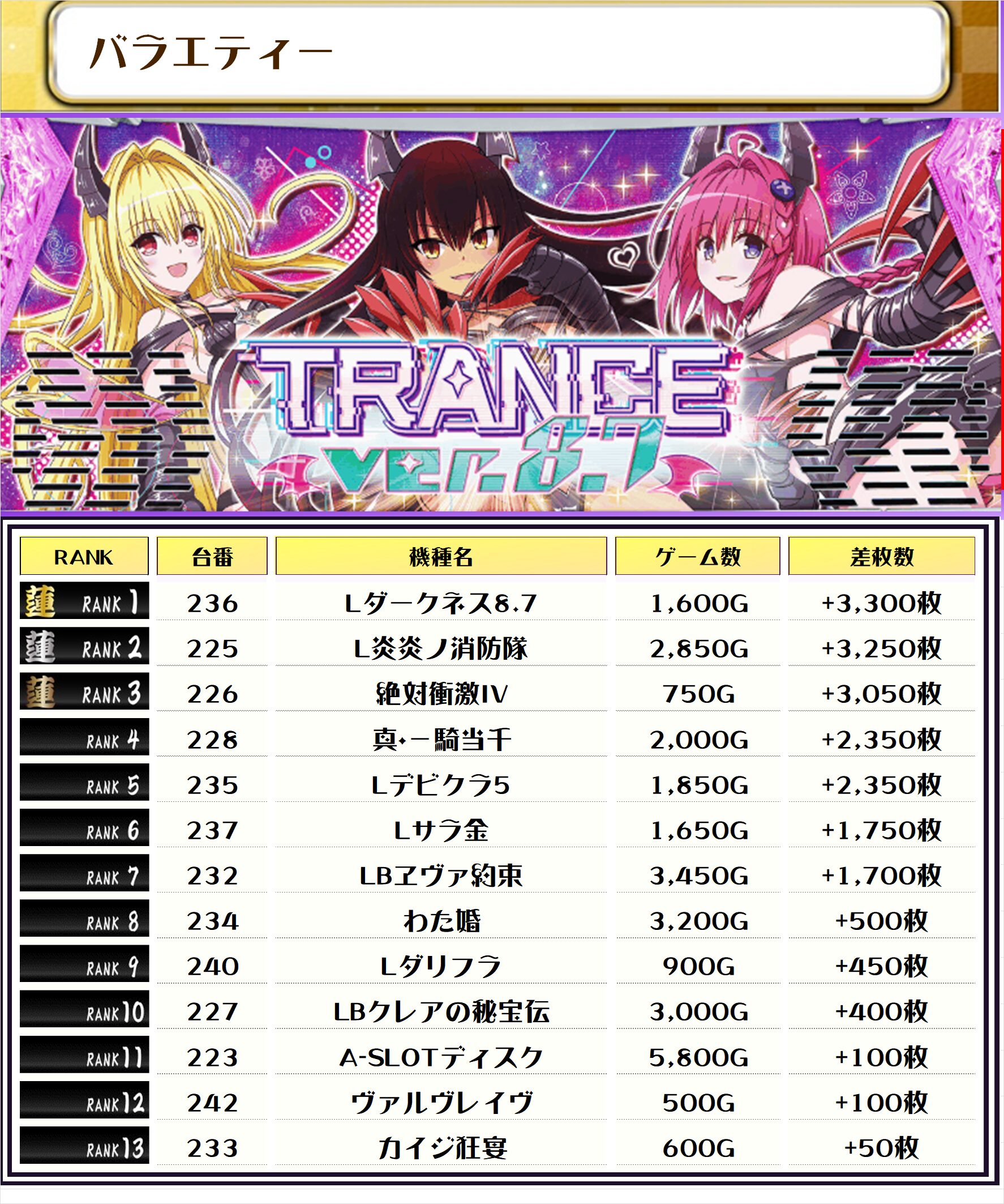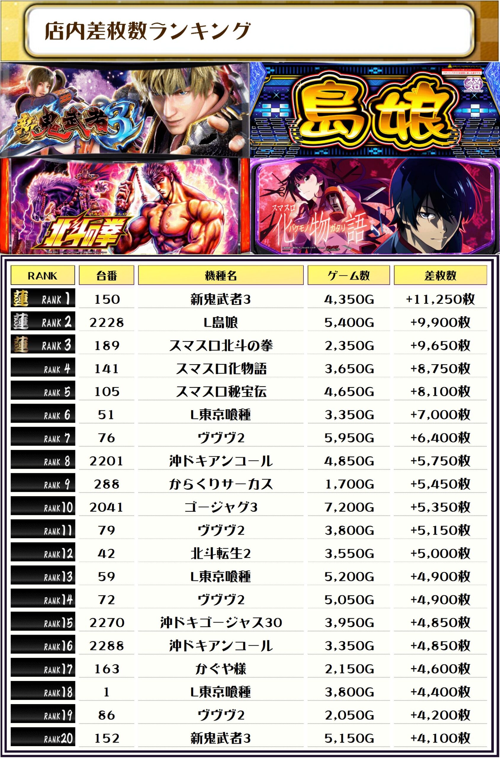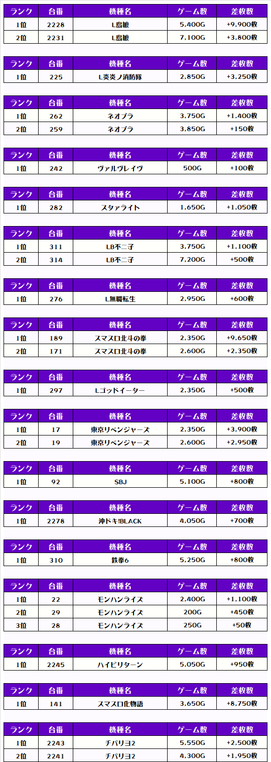 次にこの日の【機種別差枚ランキング】を見ていきましょう💪