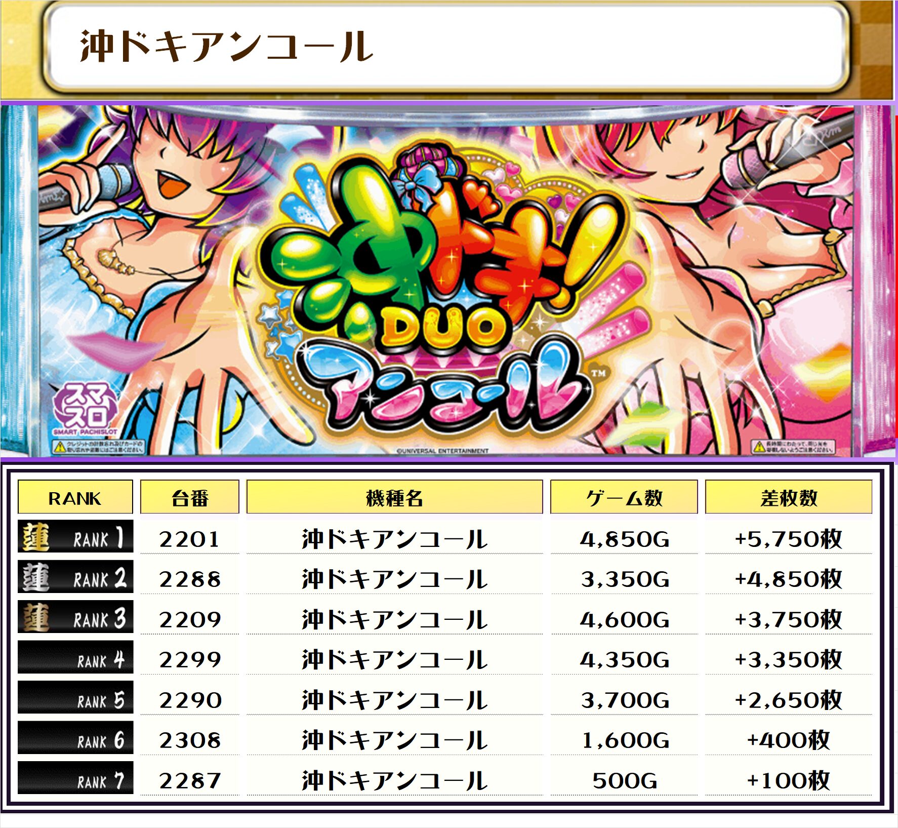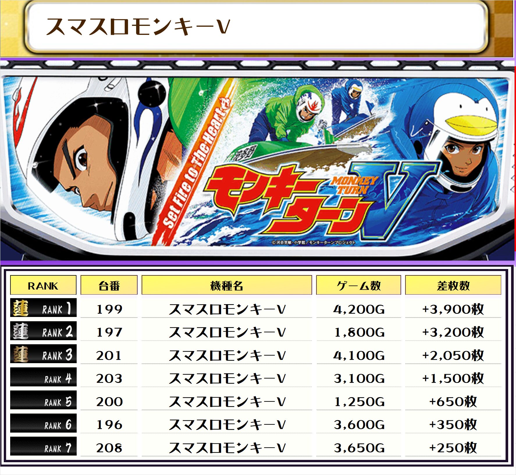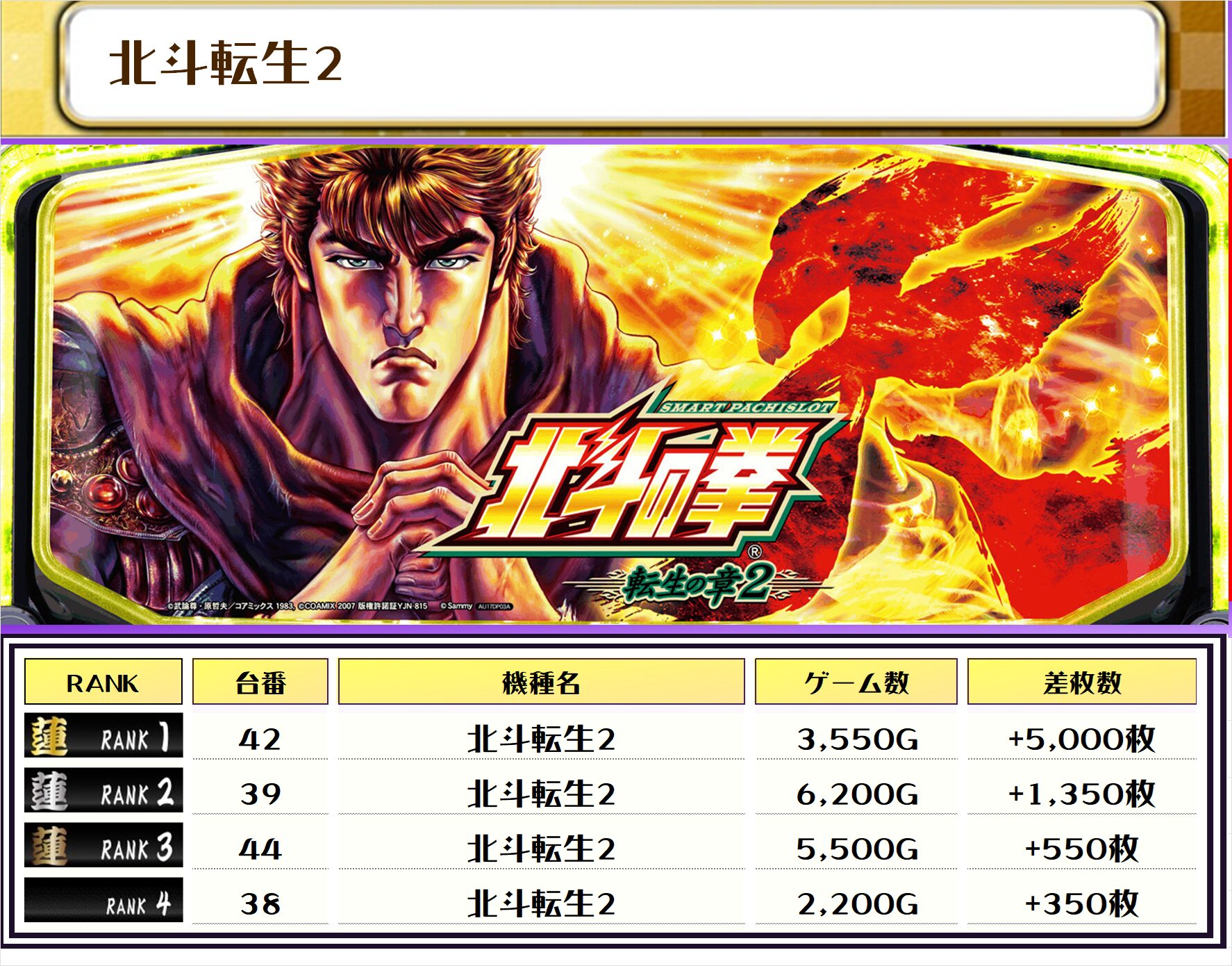 2位には【L島娘・2228番台】の+9,900枚、そして3位には【スマスロ北斗の拳・189番台】の+9,650枚がランクインしましたーっ🏆