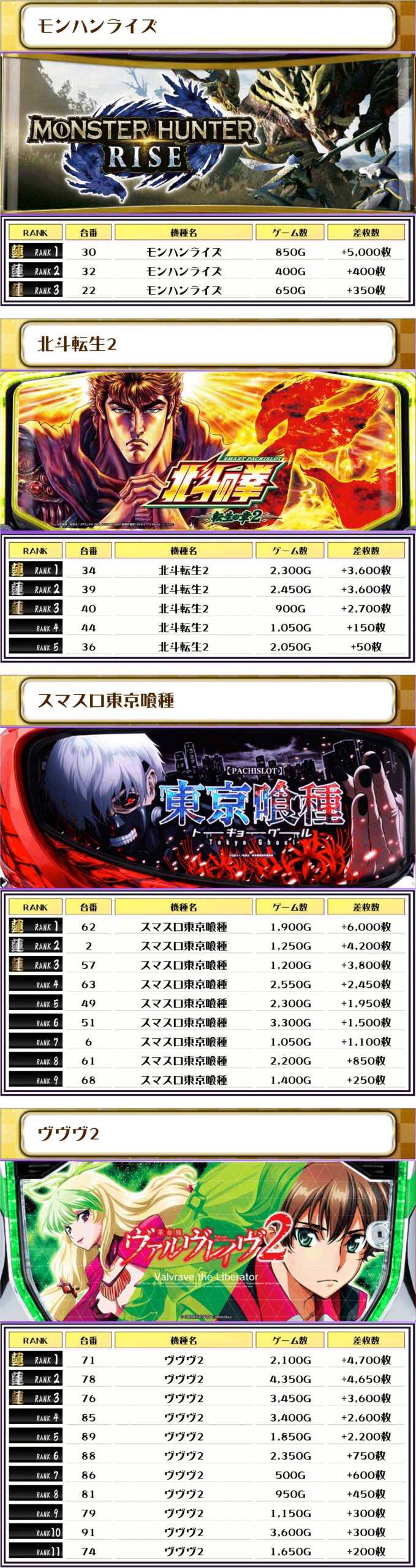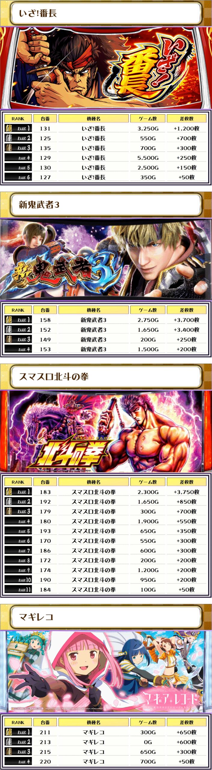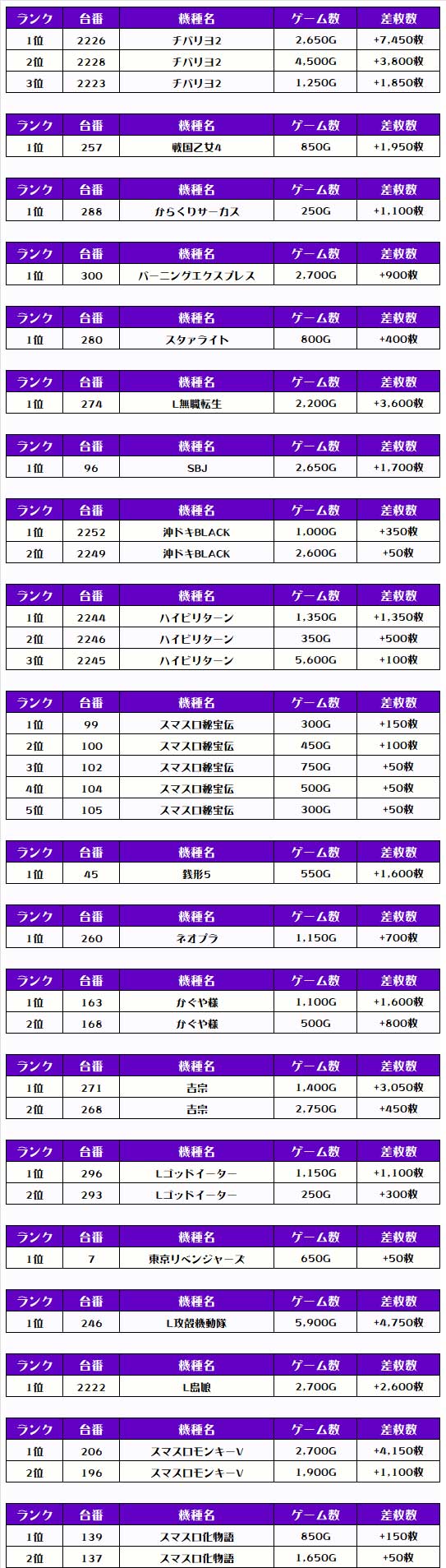 次にこの日の【機種別差枚ランキング】を見ていきましょう💪