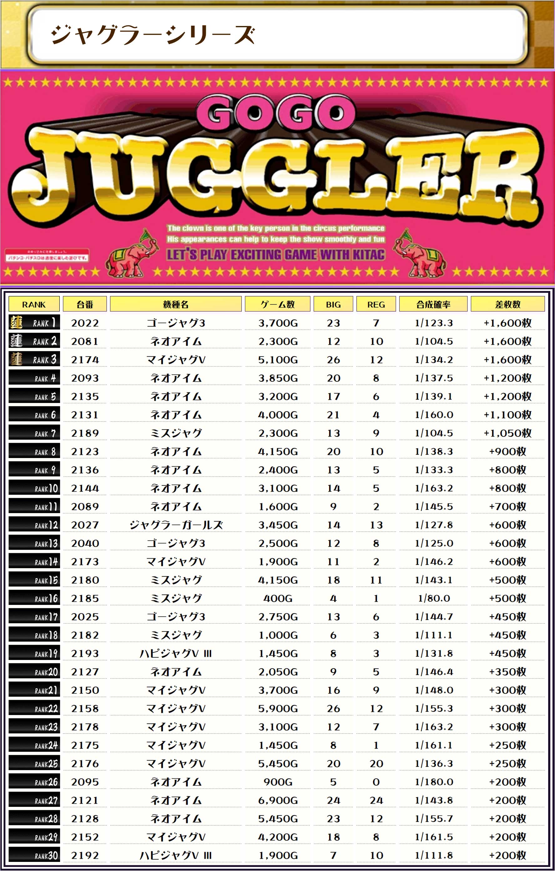 そして、全体の差枚ランキングです❗️