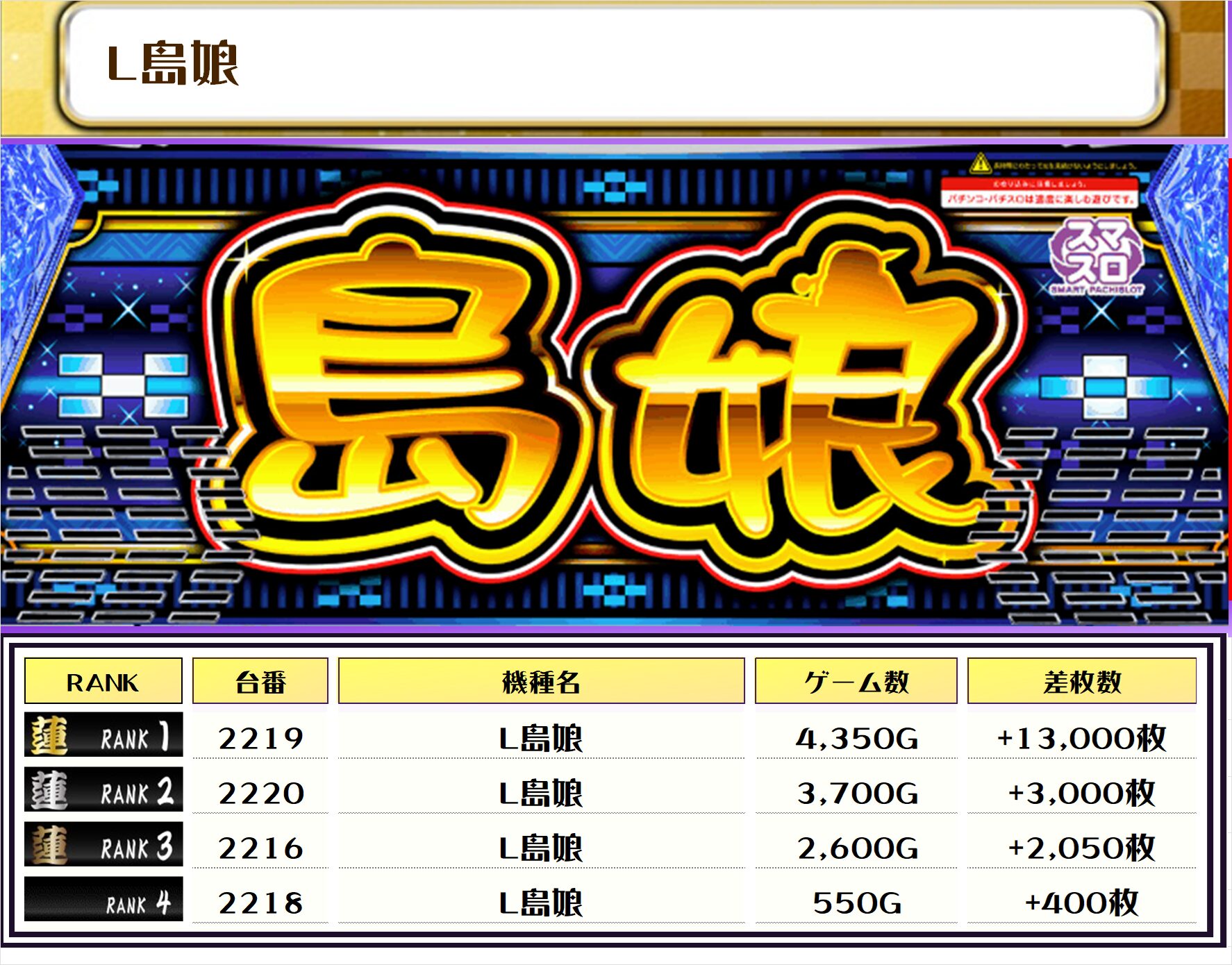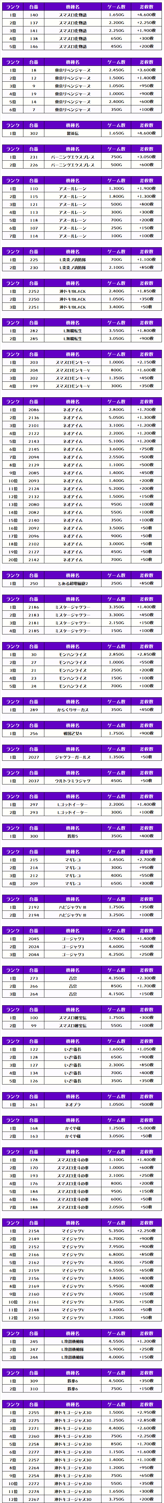 次にこの日の【機種別差枚ランキング】を見ていきましょう💪