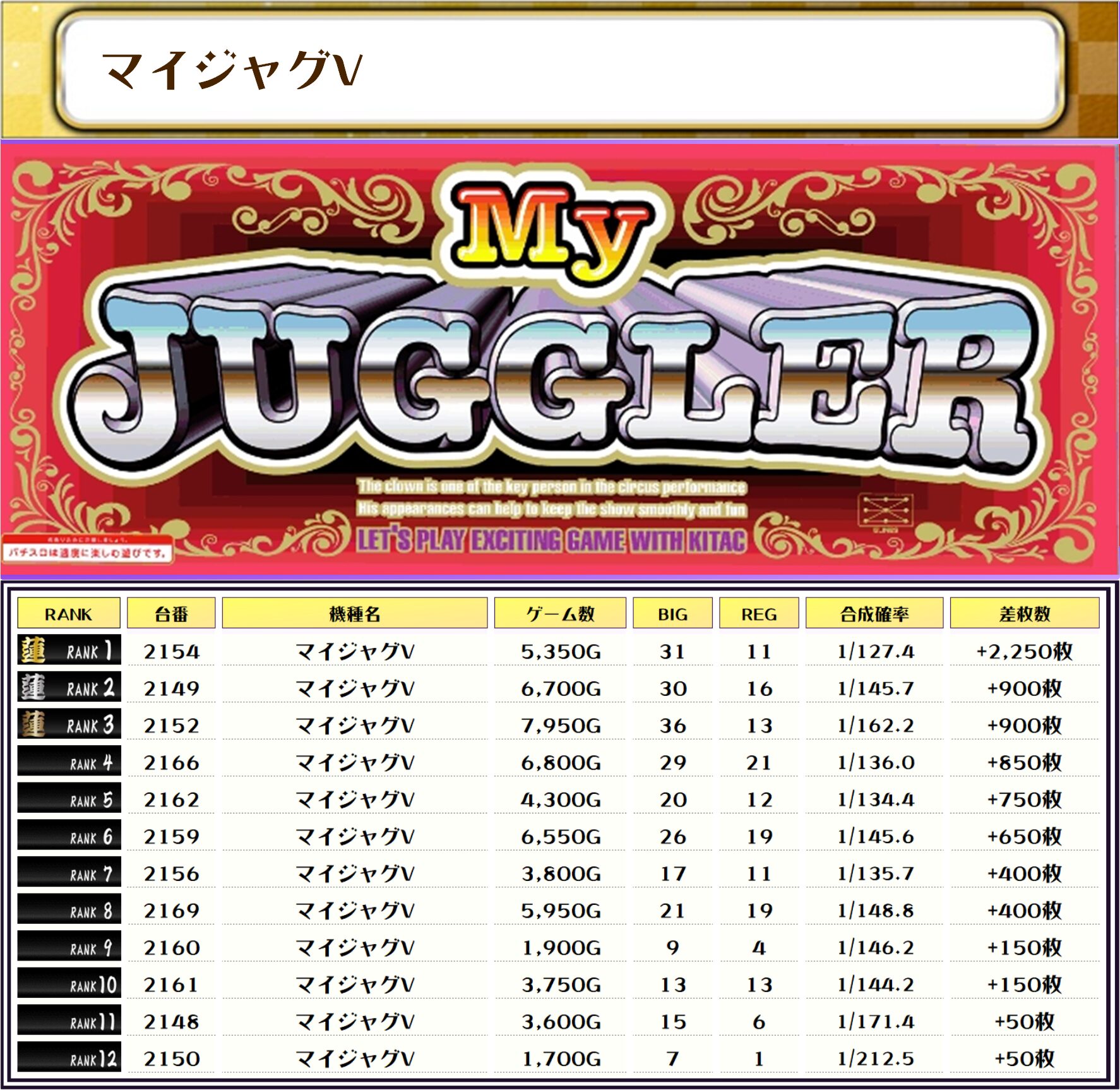 ピックアップしたのは優秀台が多かったと思われる機種、やはり機種ごとの差枚はかなり優秀でした👍