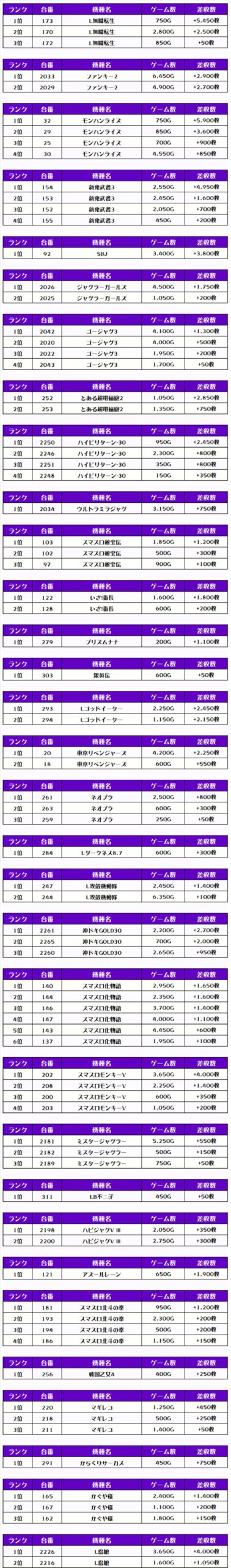 その他の機種の差枚はコチラ❗️