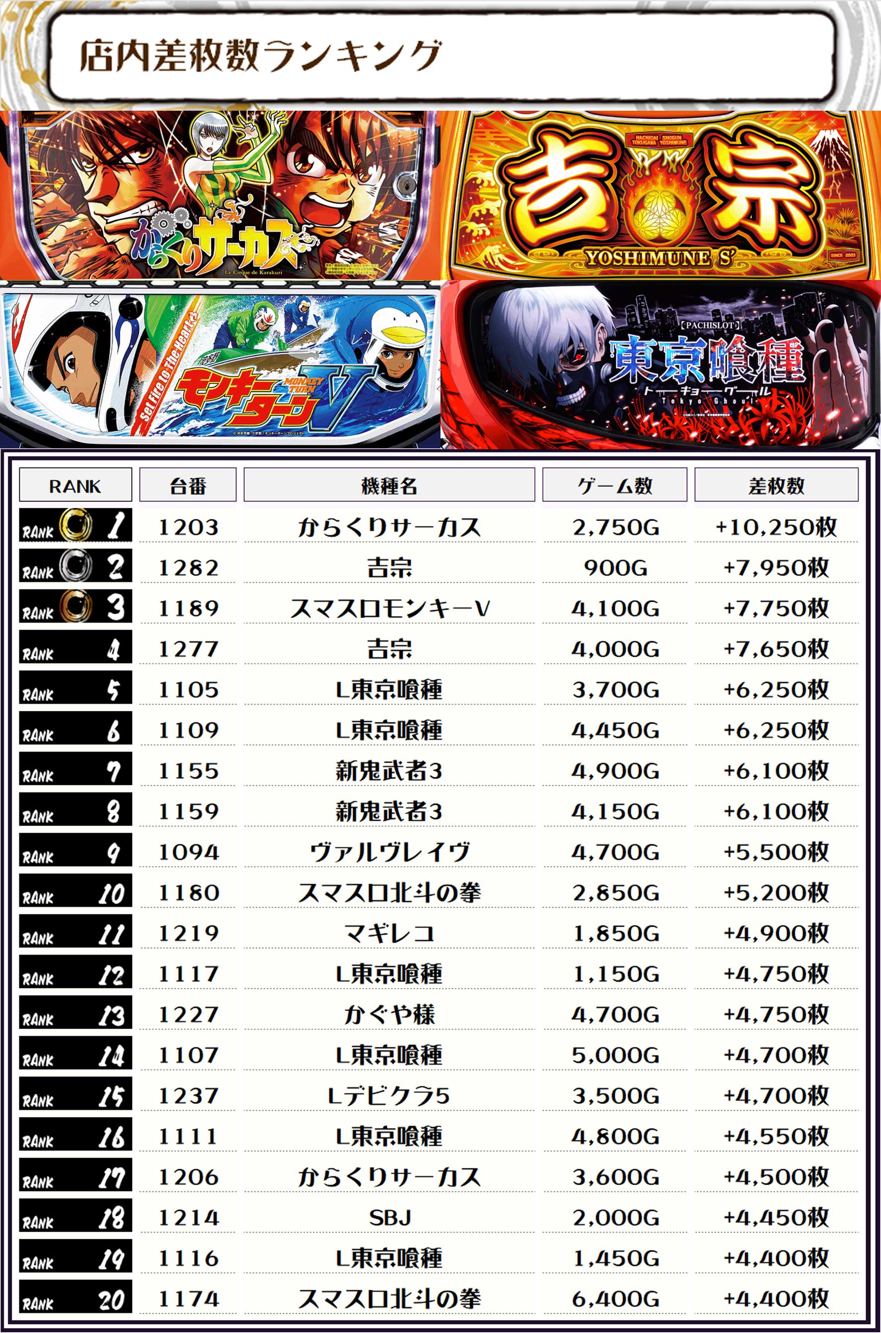 それでは【機種別差枚ランキング】をチェックしていきましょう🙆♀️