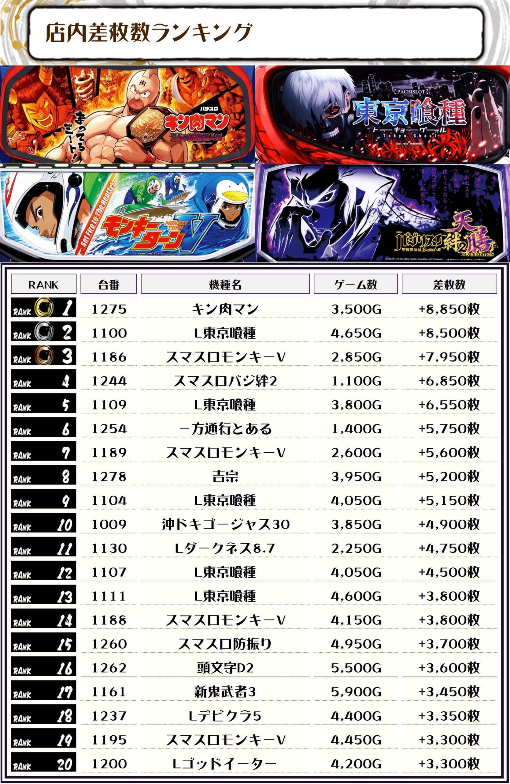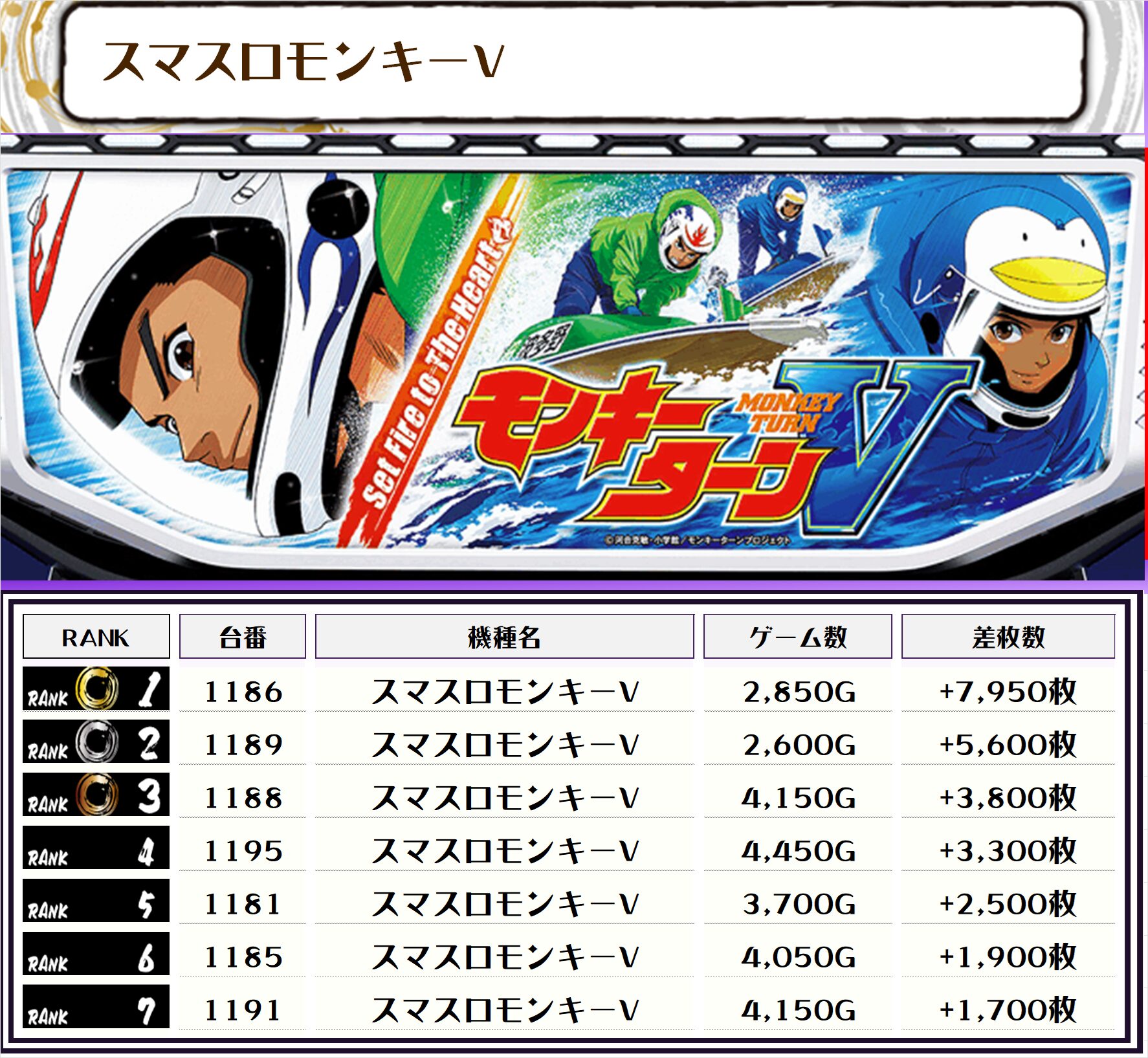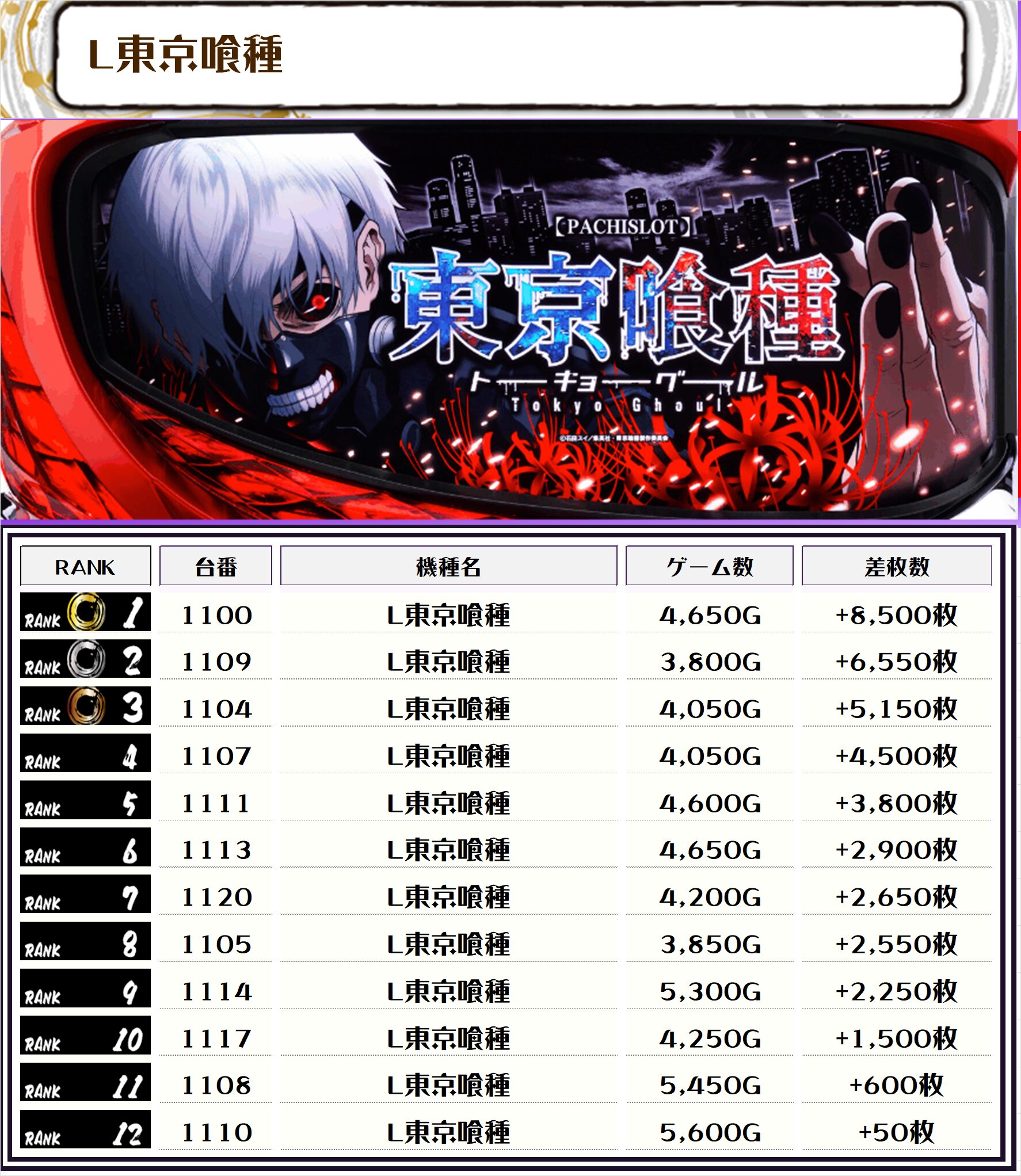 2位には【L東京喰種・1100番台】の+8,500枚、そして3位には【スマスロモンキーV・1186番台】の+7,950枚がランクインっ🏆