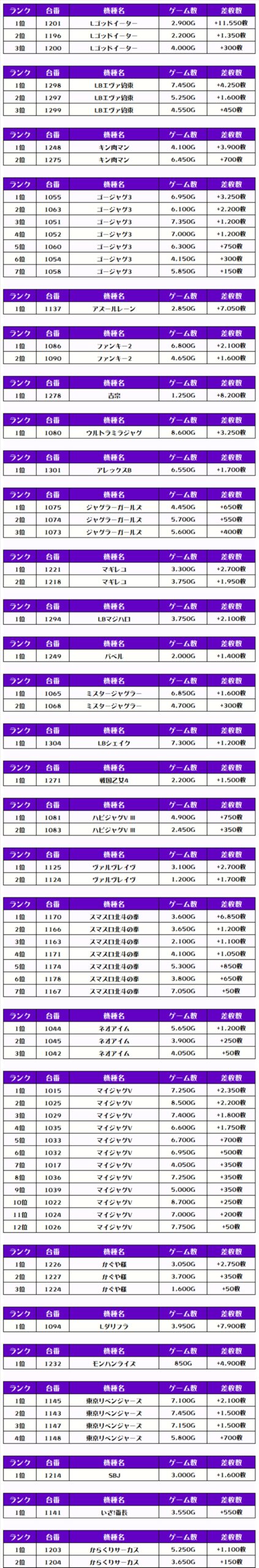 今回ピックアップした機種は稼働が高く、優秀台が多かったと思われる機種たちになります👍