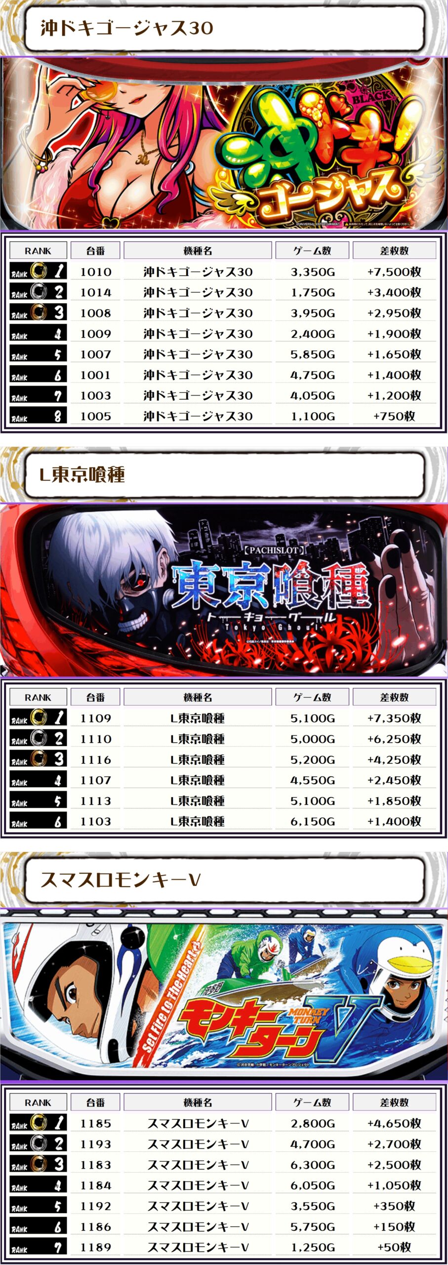 それでは【機種別差枚ランキング】をチェックしていきましょう🙆♀️