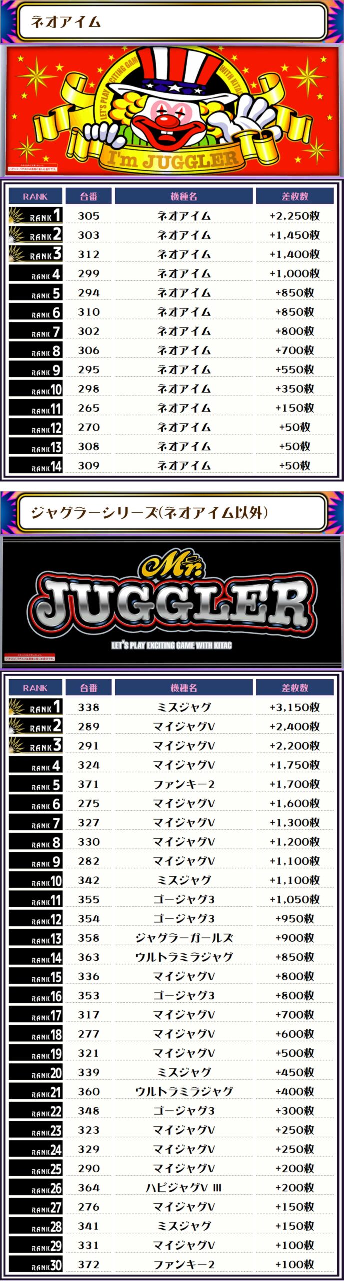 今回の取材では、これまでと同様にジャグ系の各機種で優秀台が見つかり、特にネオアイムは優秀台の数が多かったみたいですねぇ🔎