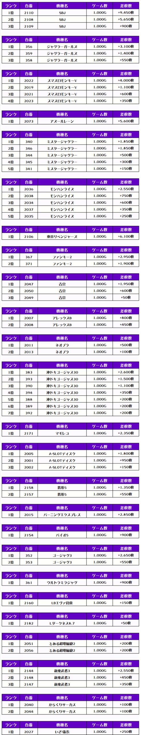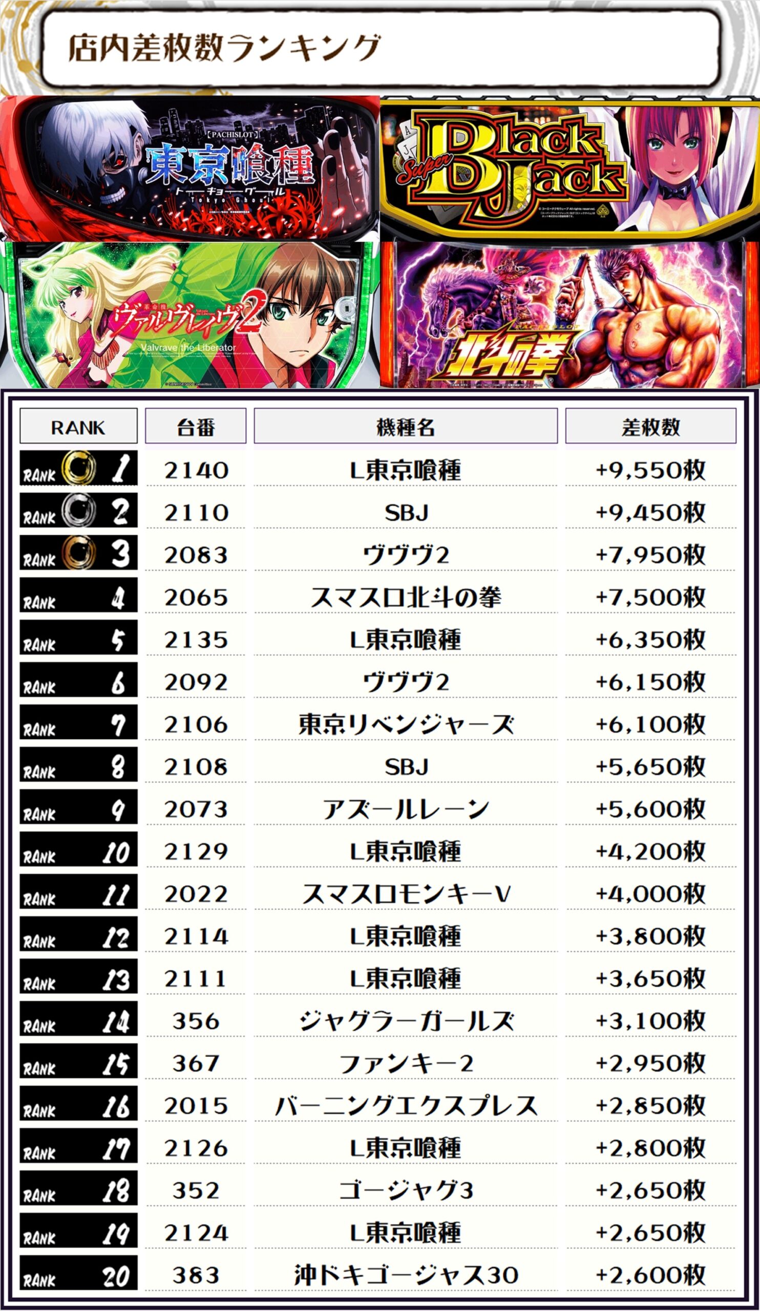 それでは【機種別差枚ランキング】をチェックしていきましょう🙆‍♀️