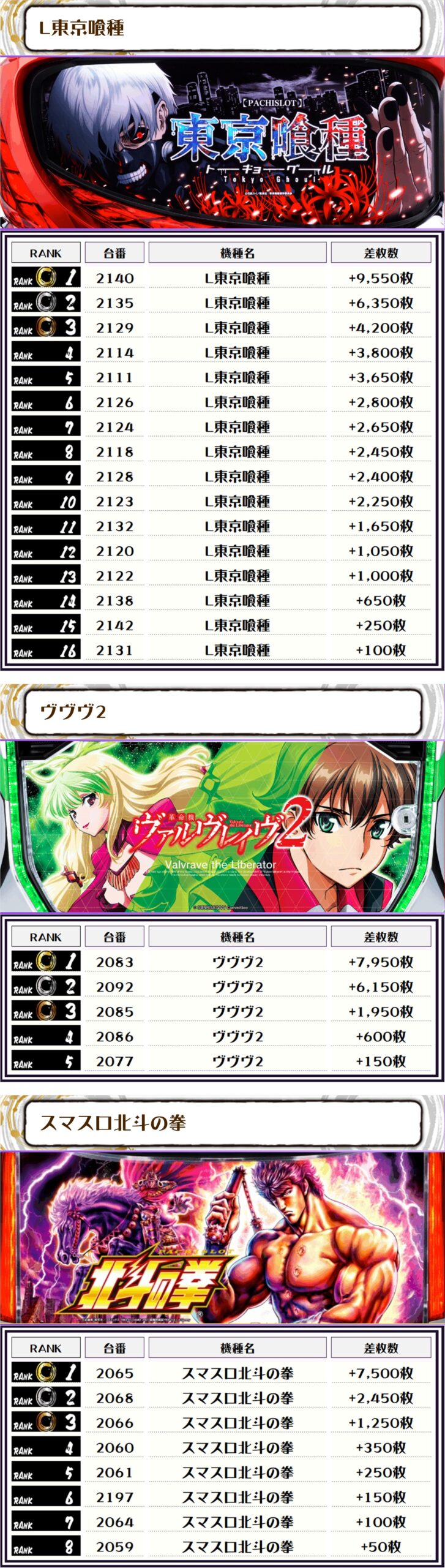 この日、全体の差枚トップに輝いたのは【L東京喰種・2140番台】の+9,550枚‼️