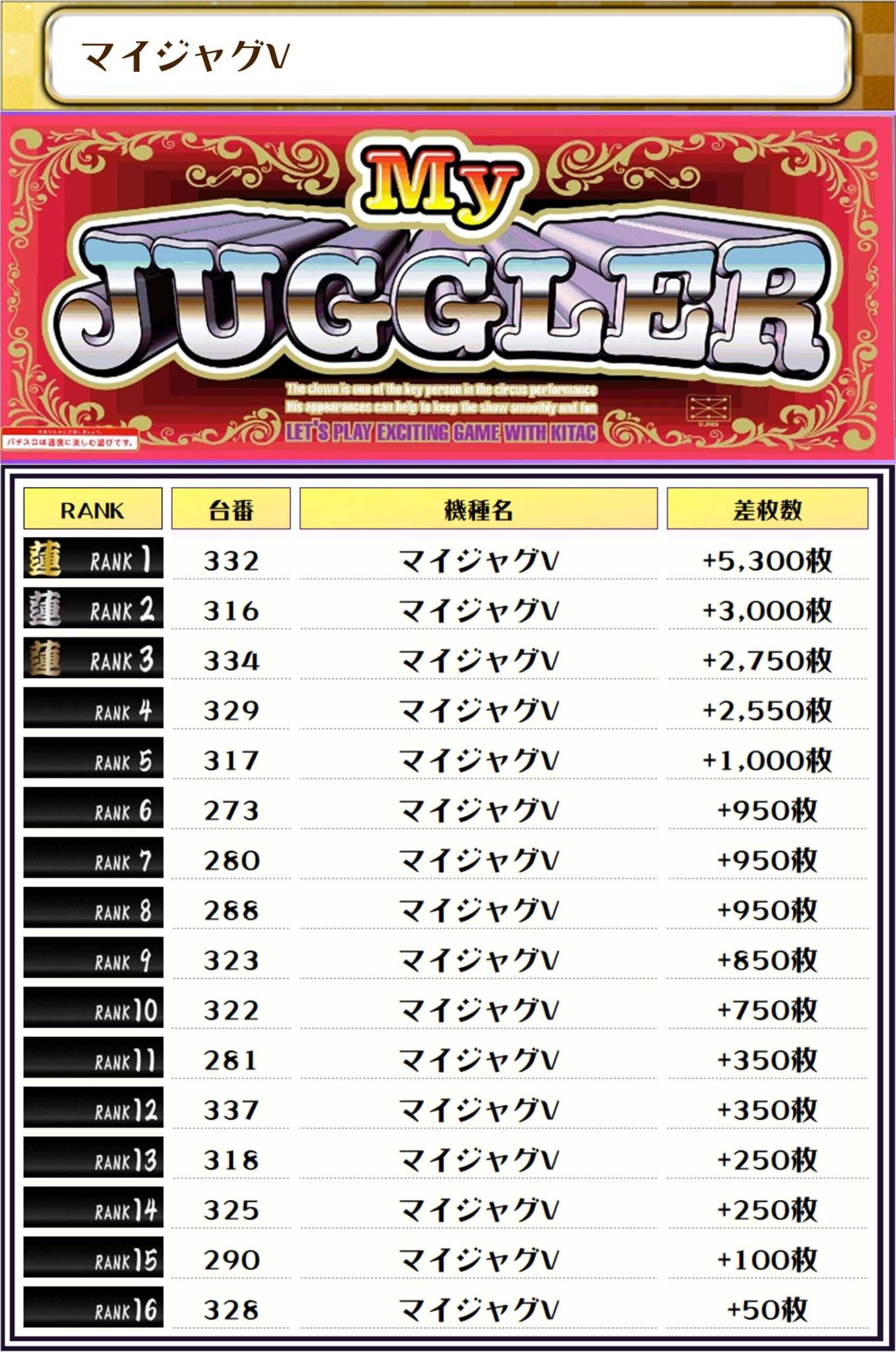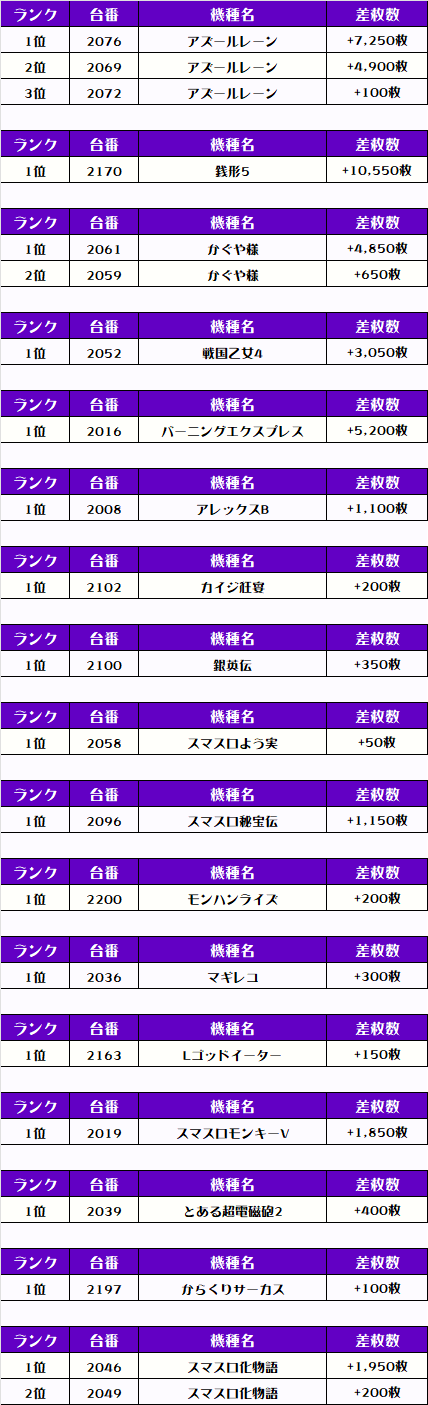 それでは早速、機種別差枚ランキングをチェック❗️