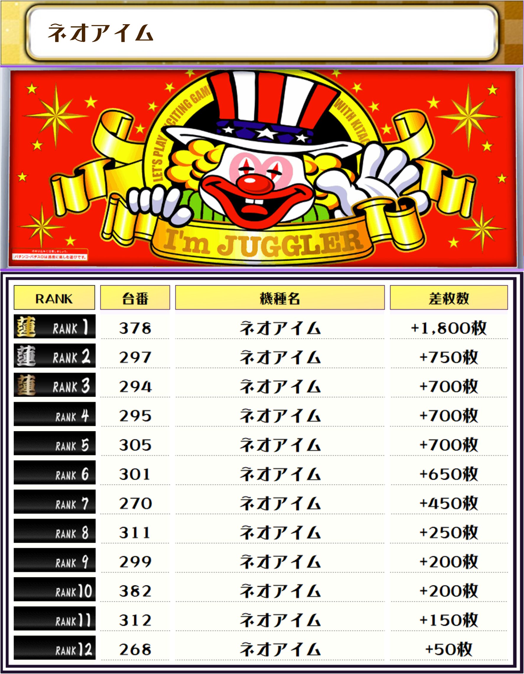 最後に、この日の店内差枚ランキングはコチラになります❗️