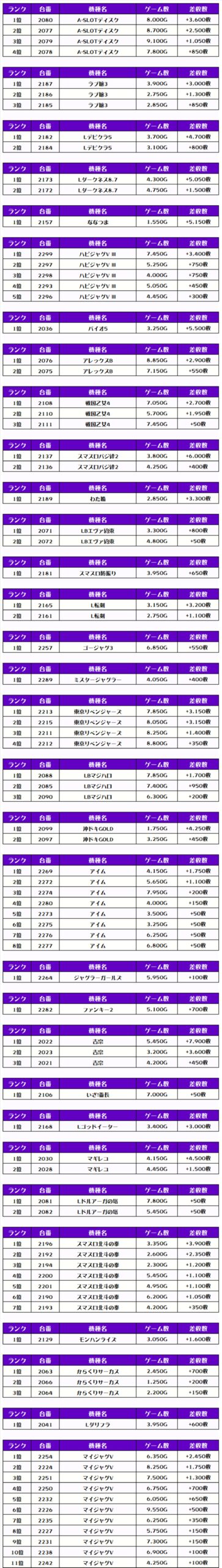 今回もランキング1位には万枚達成達成台が出たでやんすっ‼️