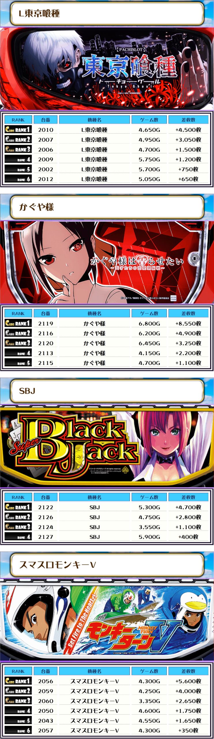 次は機種別の差枚ランキングをどうぞ❗️