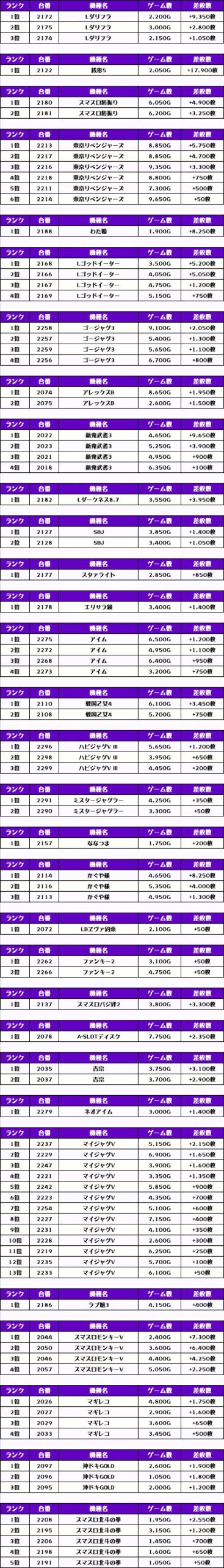 次は機種別の差枚ランキングをどうぞ❗️
