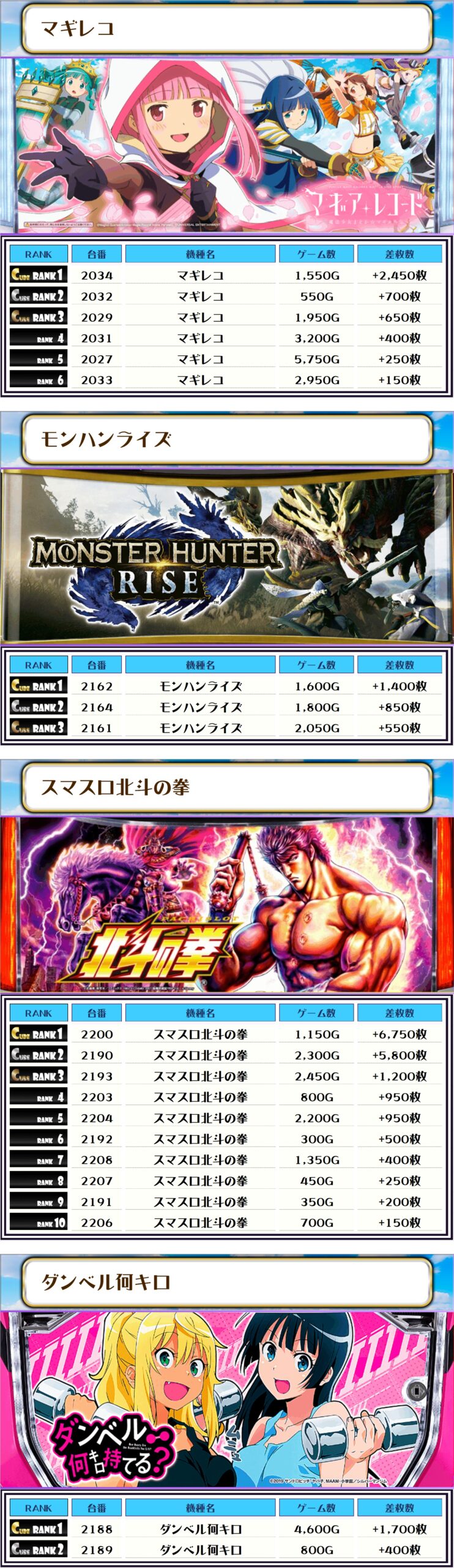 早速ですが機種別の差枚ランキングをどうぞ❗️