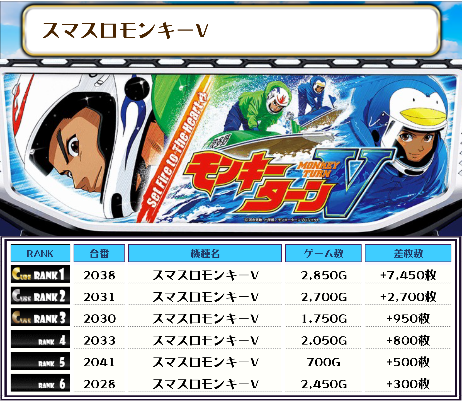 2位には【バイオ5・2141番台】の+7,900枚、3位には【スマスロモンキーV・2038番台】の+7,450枚がランクインっ🏆🏆🏆