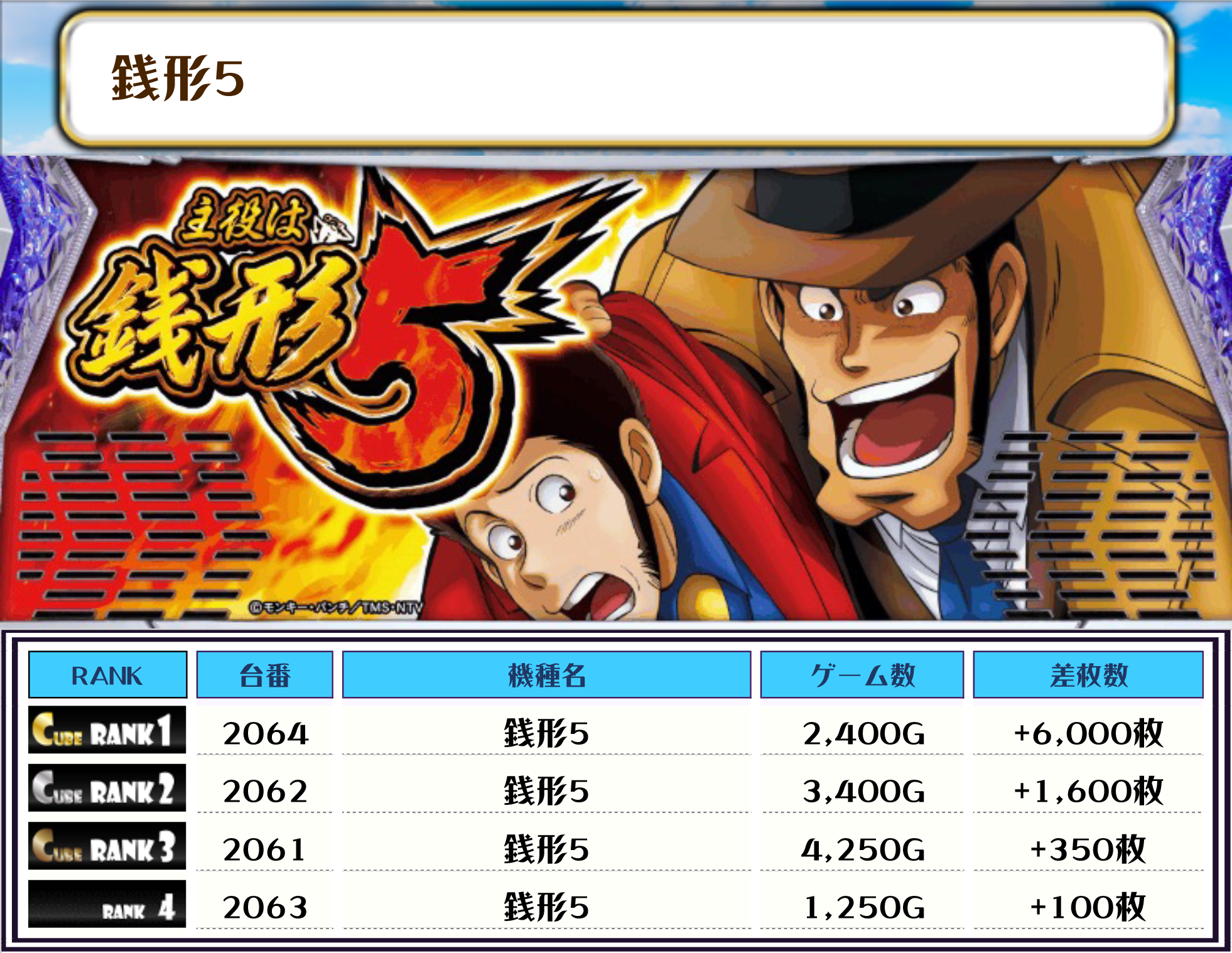 特に銭形5・A‐SLOTディスク・LBヱヴァ約束は全台プラスの差枚で特に盛り上がっていたでやんすよ🔥🔥