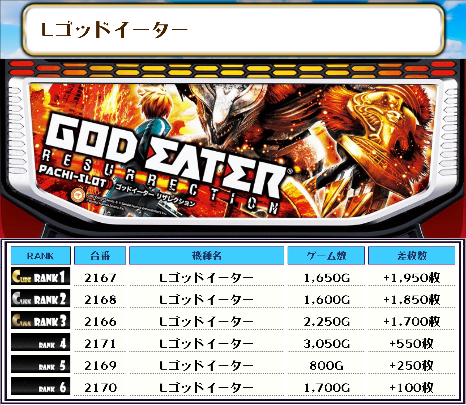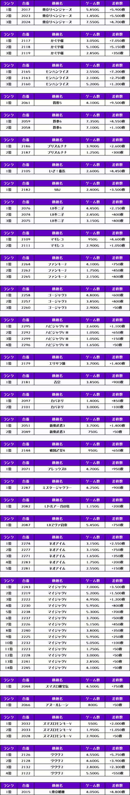 早速ですが機種別の差枚ランキングをどうぞ❗️
