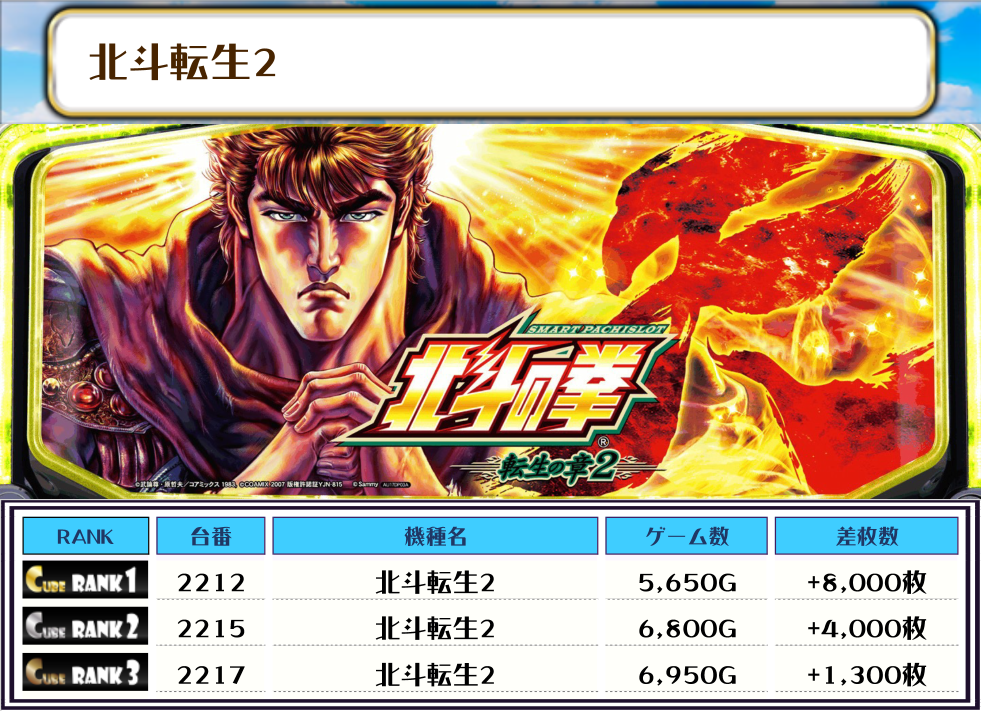 新台の北斗転生2は言わずもがな、スマスロ北斗の拳も高稼働だったでやんすよっ😤北斗転生2は2位にもランクインしておりやすっ👏👏