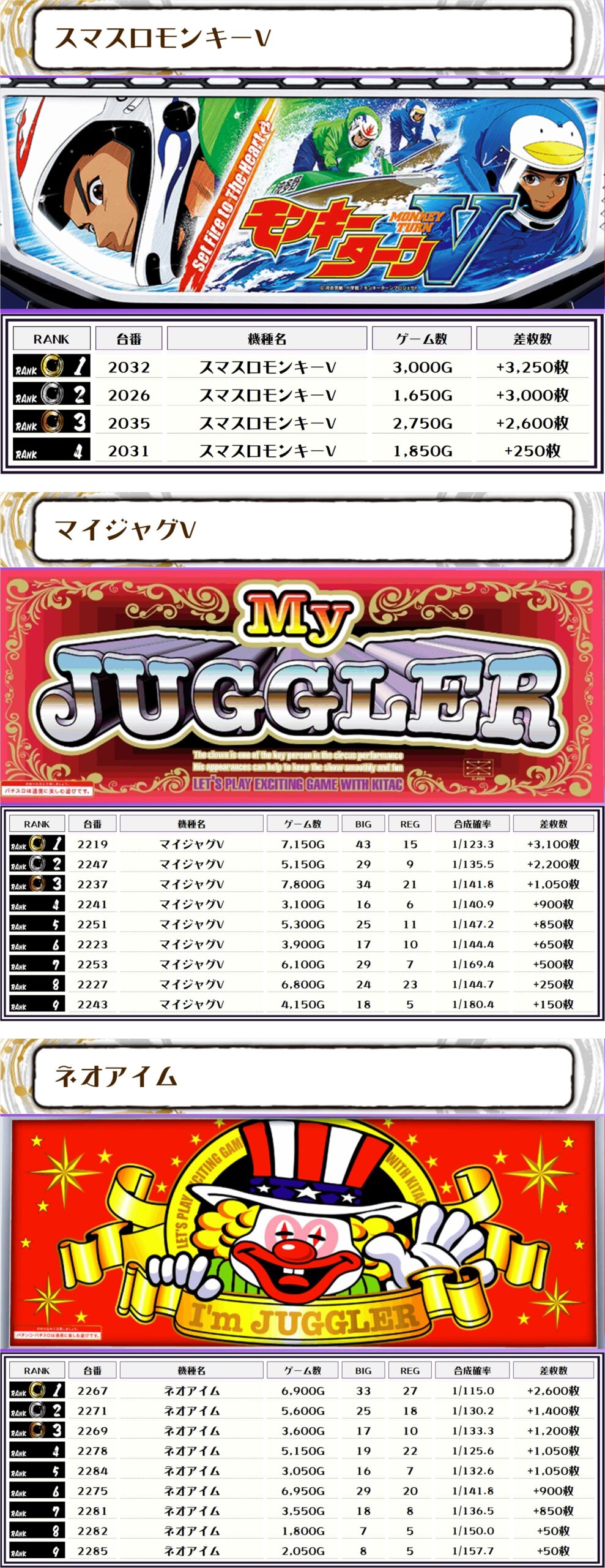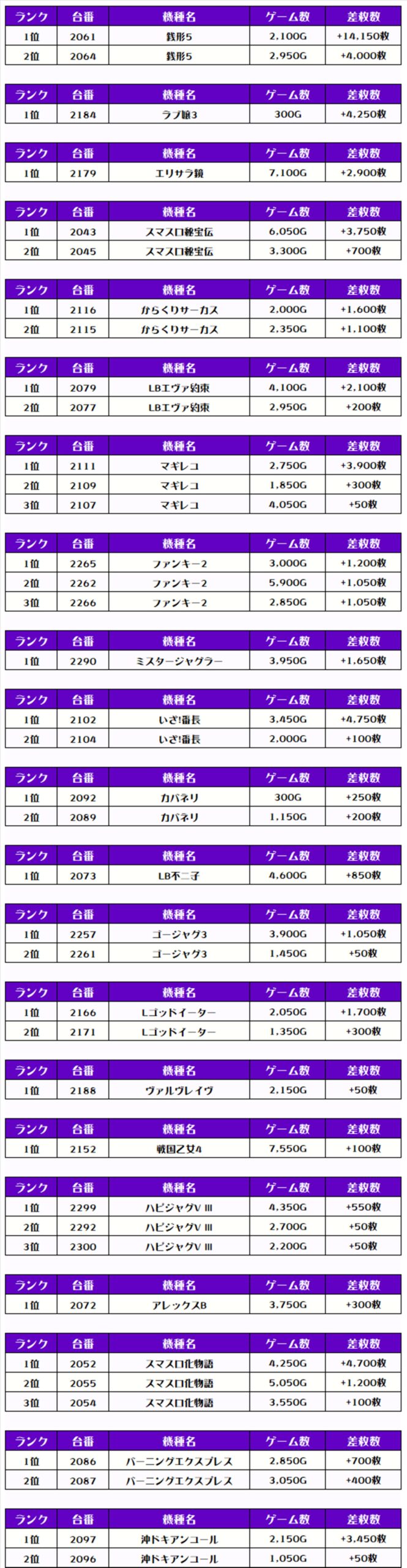 それでは【機種別差枚ランキング】をチェックしていきましょう🙆‍♀️
