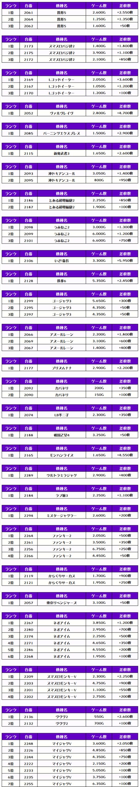 その他の機種の差枚はコチラ❗️