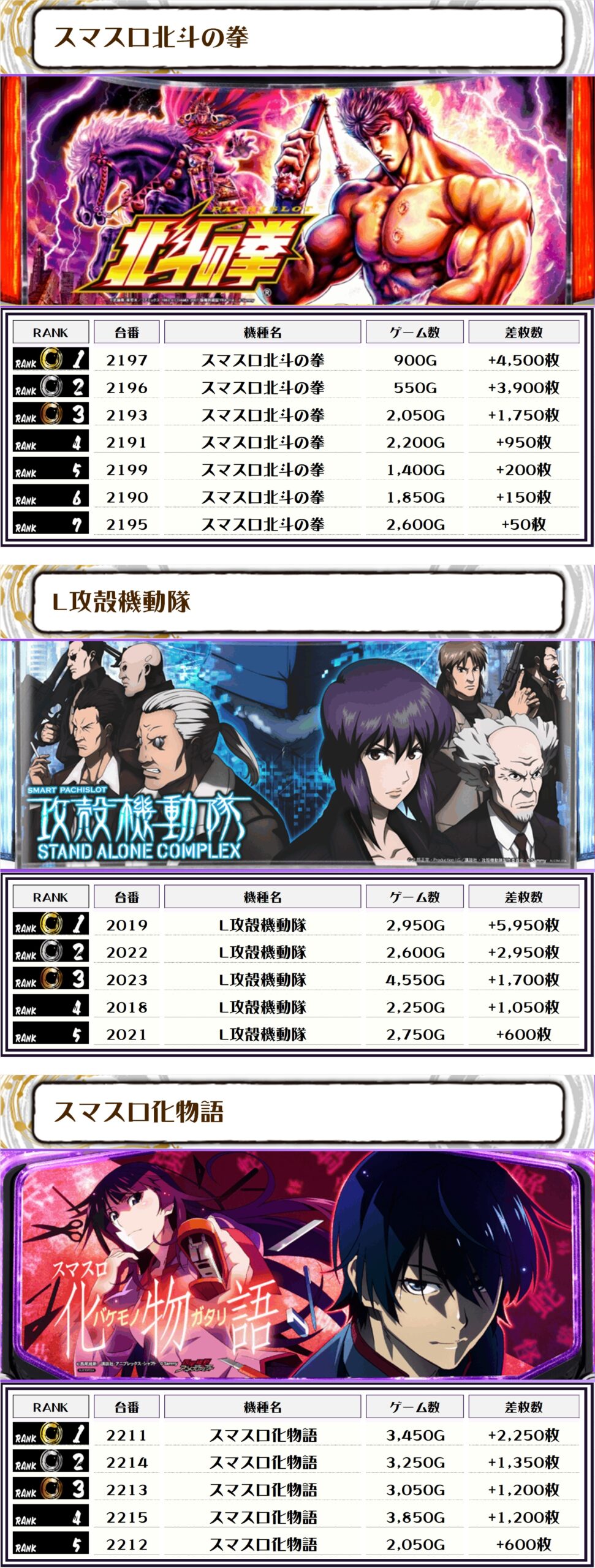 この日、全体の差枚トップに輝いたのは【L攻殻機動隊・2019番台】の5,950枚‼️