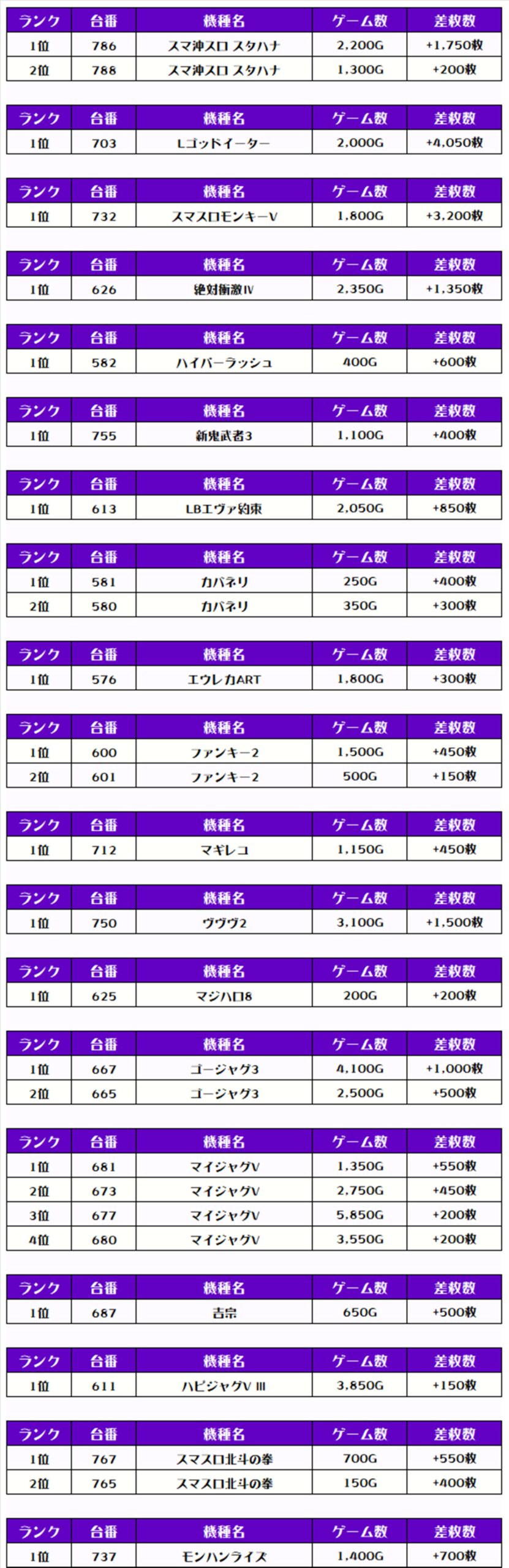 それでは、この日の【機種別差枚ランキング】を見ていきましょう❗️