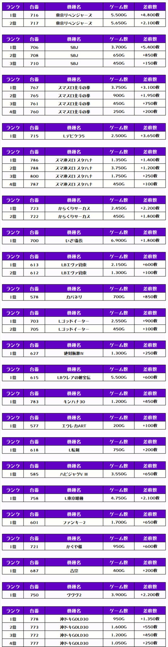 そして、この日全台を対象とした差枚ランキングがこちらになりますっ👍