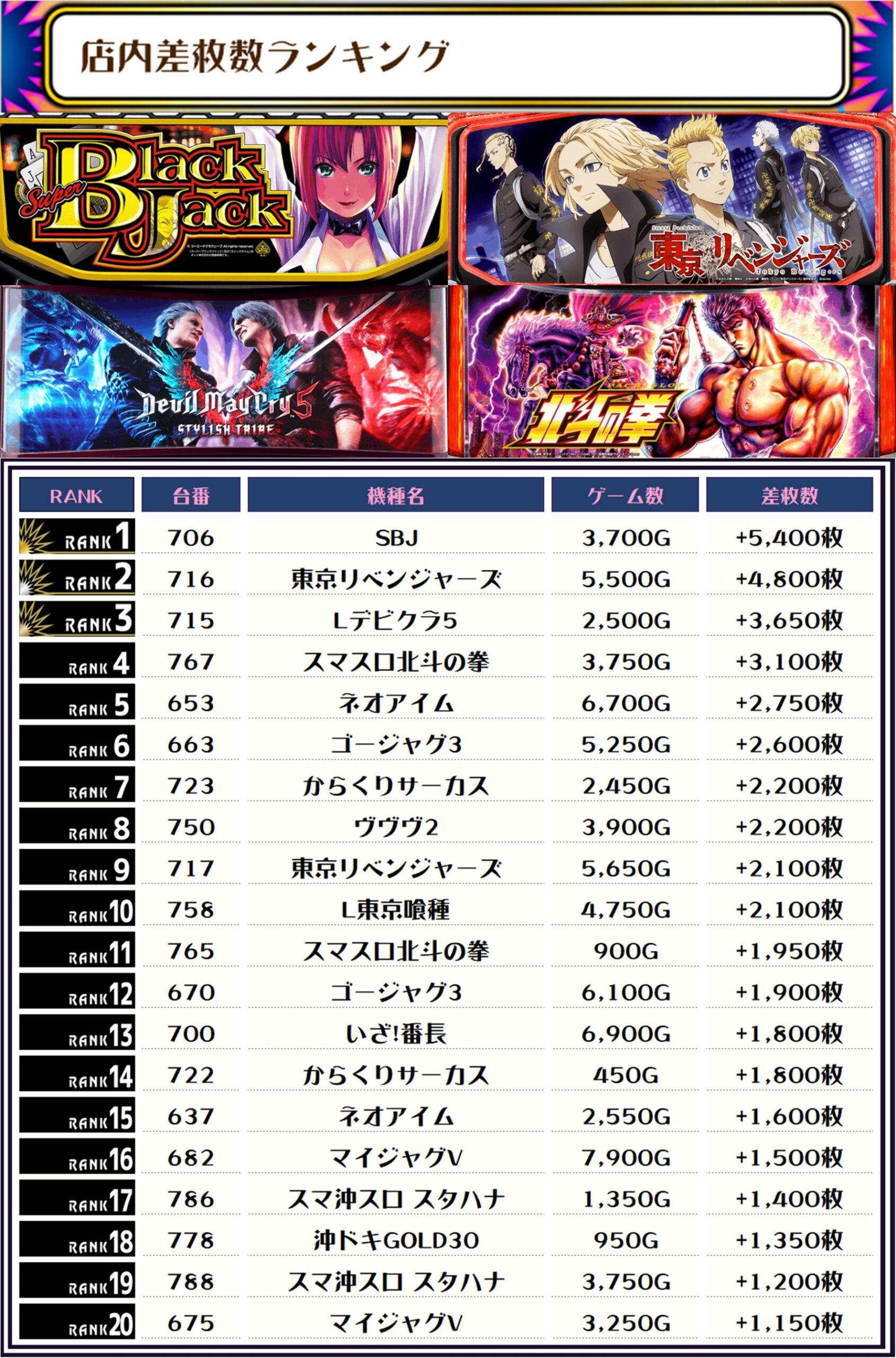 そして2位には【東京リベンジャーズ・716番台】の+4,800枚、3位にはLデビクラ5・715番台】の+3,650枚がランクインっ🏆🏆🏆🏆