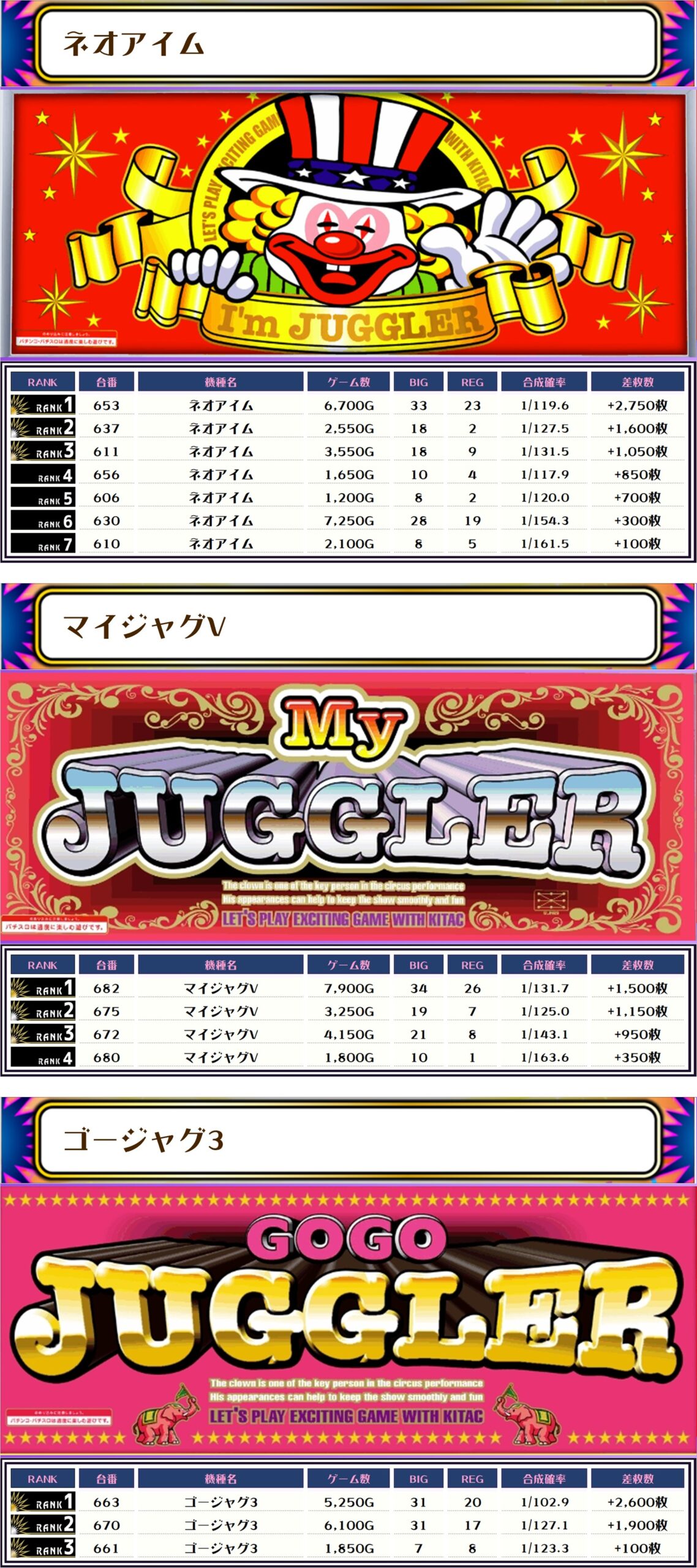 それでは、この日の【機種別差枚ランキング】を見ていきましょう❗️