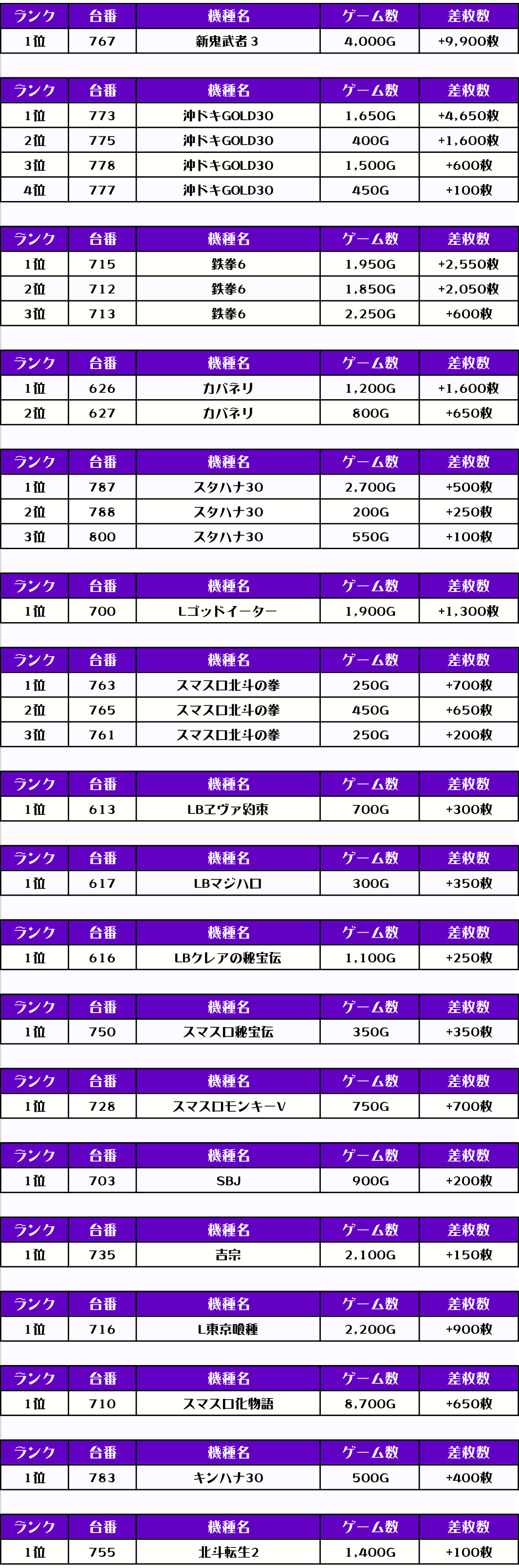 そして、この日全台を対象とした差枚ランキングがこちらになりますっ👍