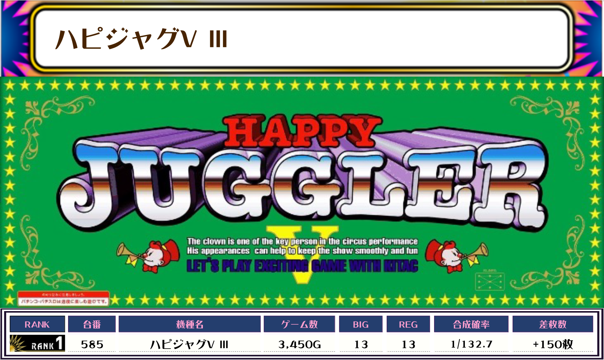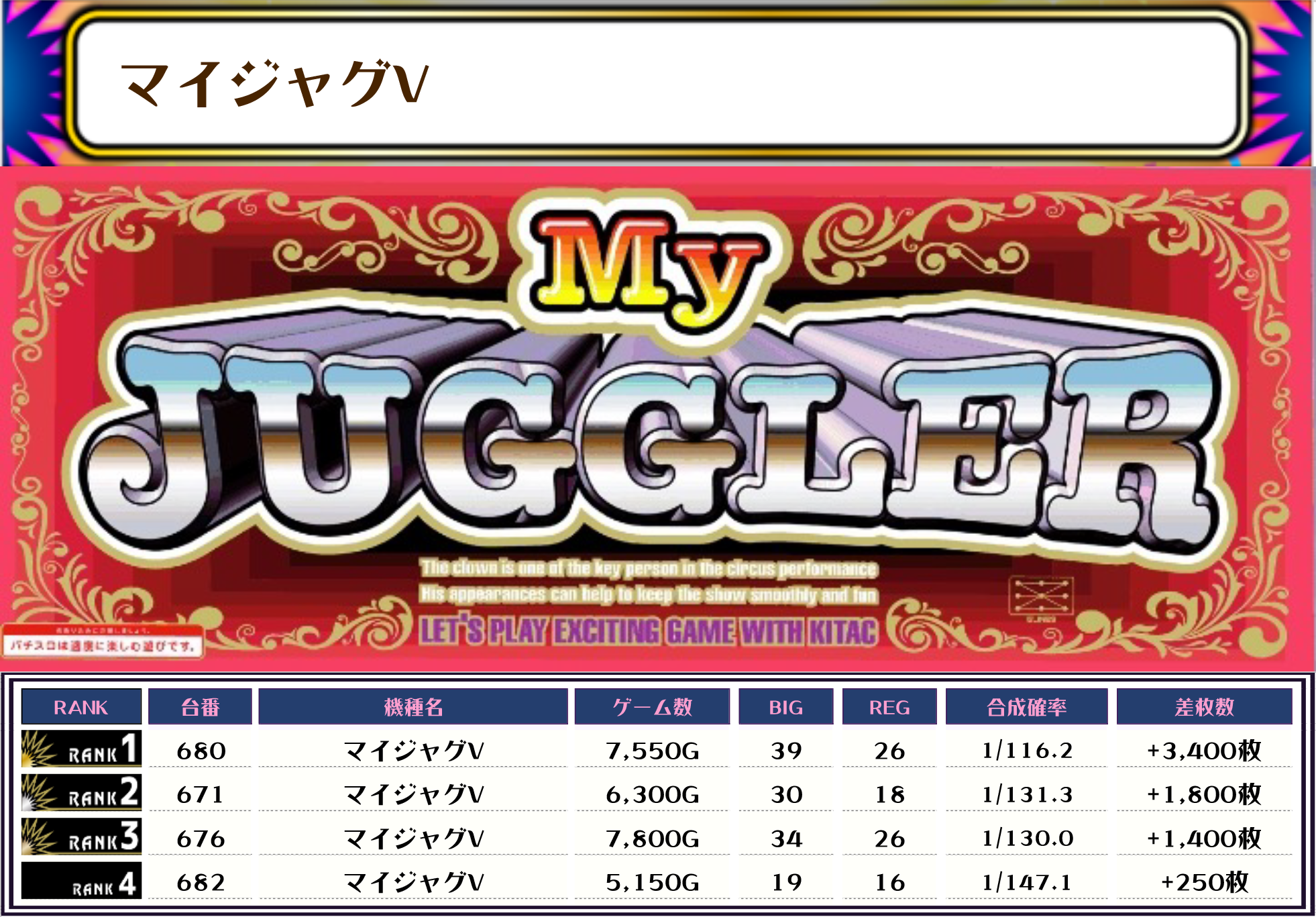 ジャグ系の中ではネオアイム・マイジャグVが特に稼働が高く優秀台が多く見られましたよ👌