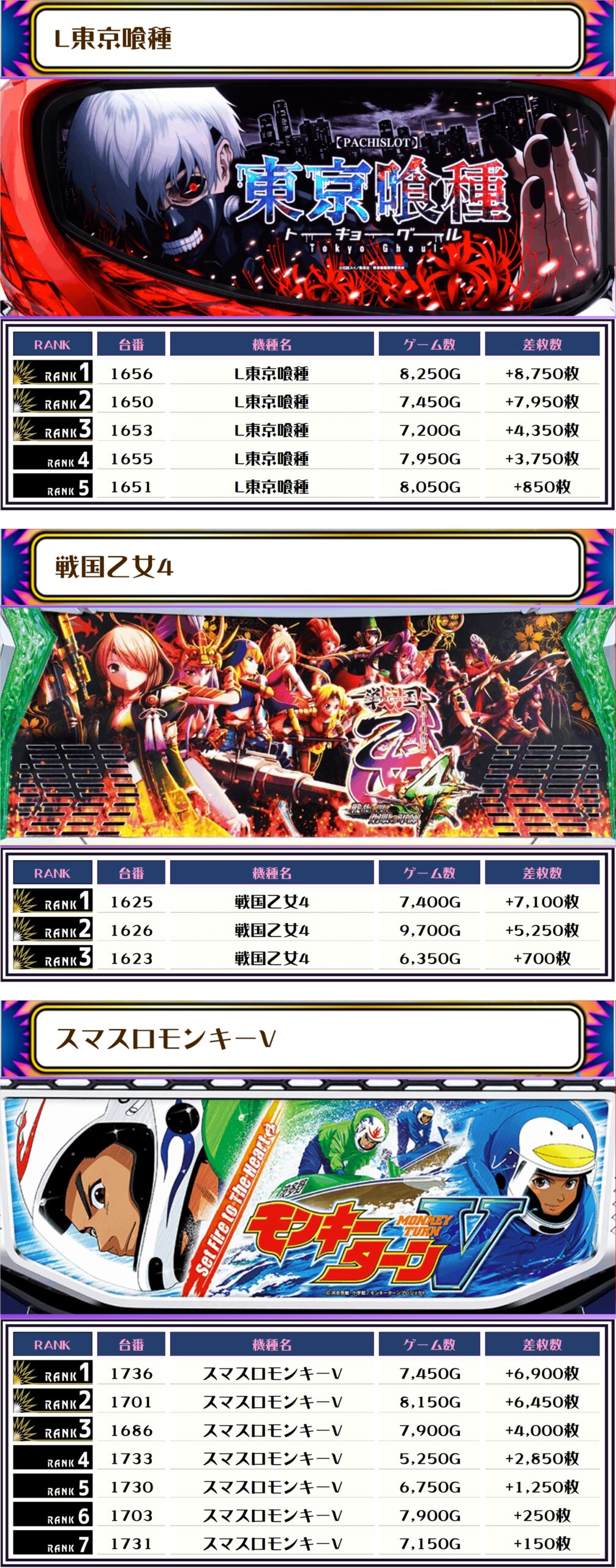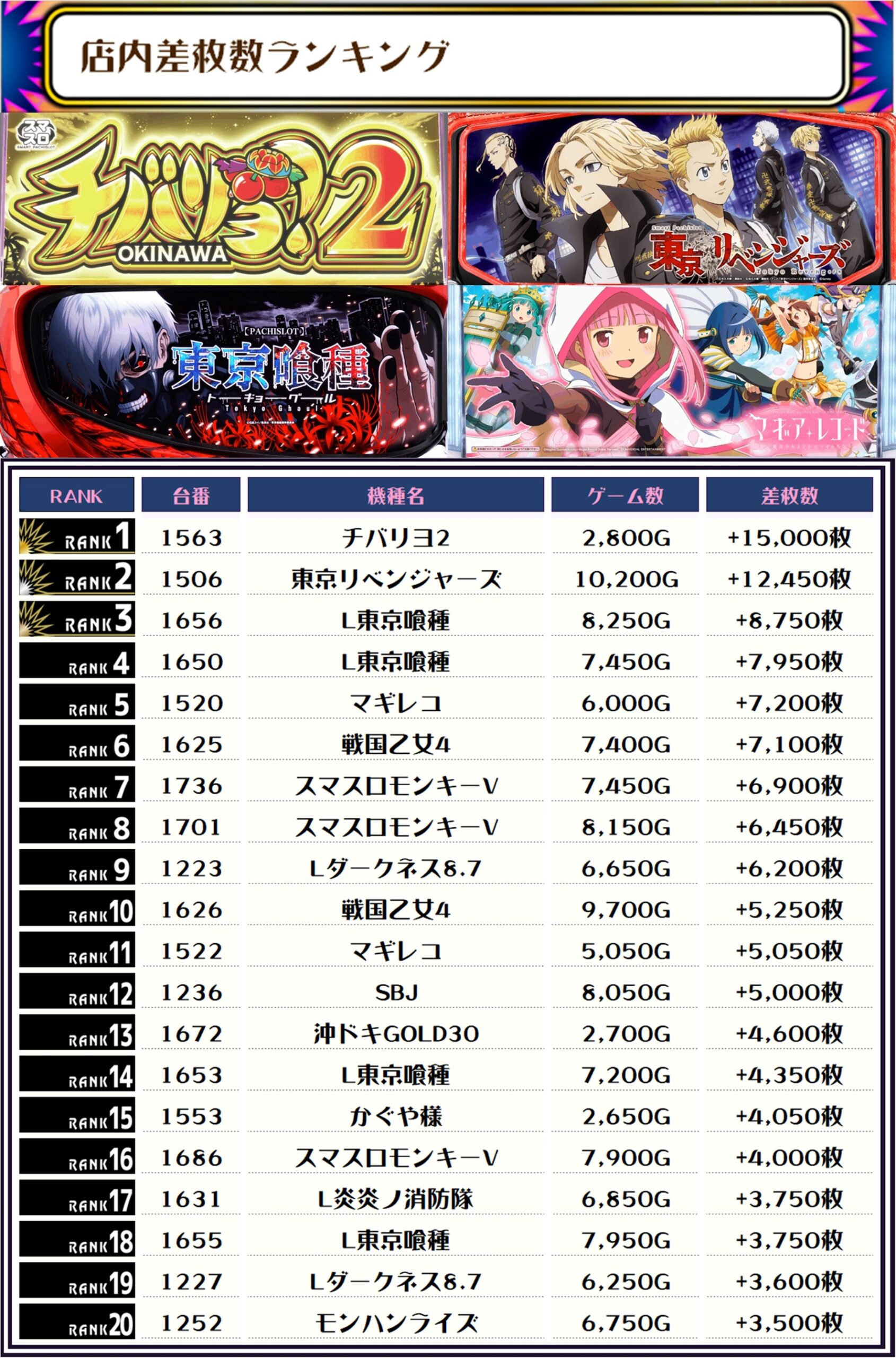 それでは、この日の【機種別差枚ランキング】を見ていきましょう❗️