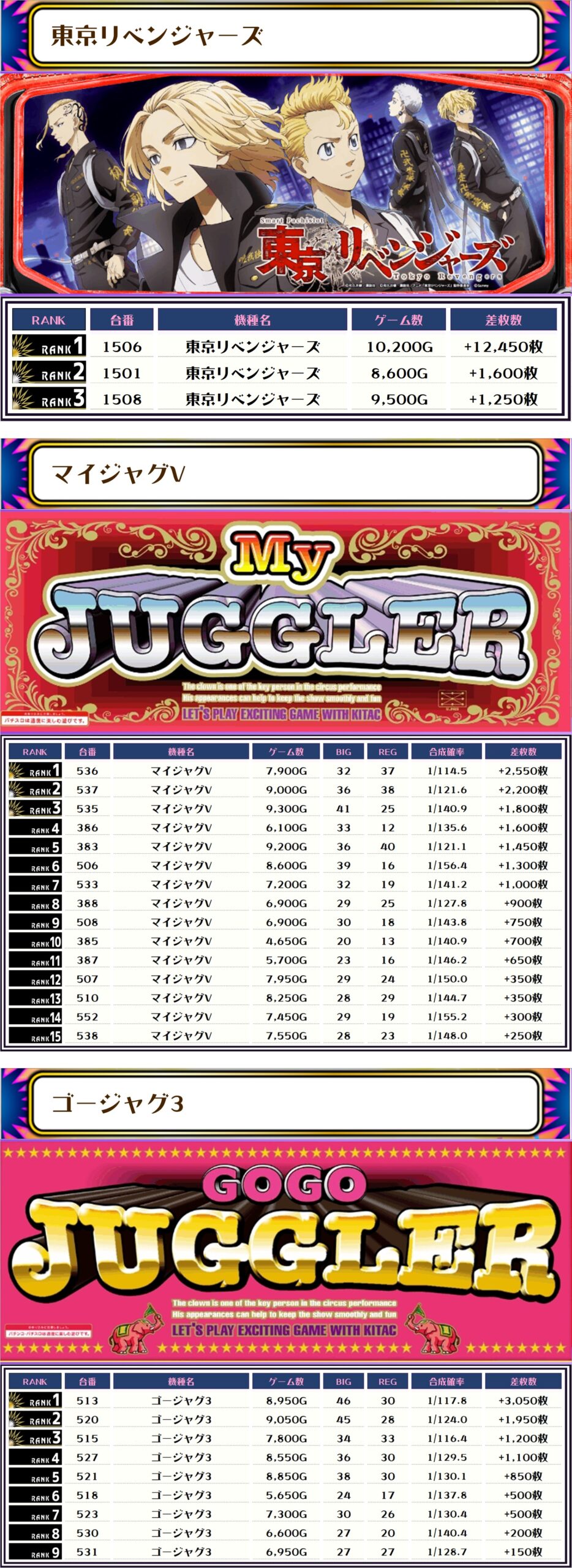 2位には【東京リベンジャーズ・1506番台】の+12,450枚、3位には【L東京喰種・1656番台】の+8,750枚がランクインっ🏆🏆🏆🏆