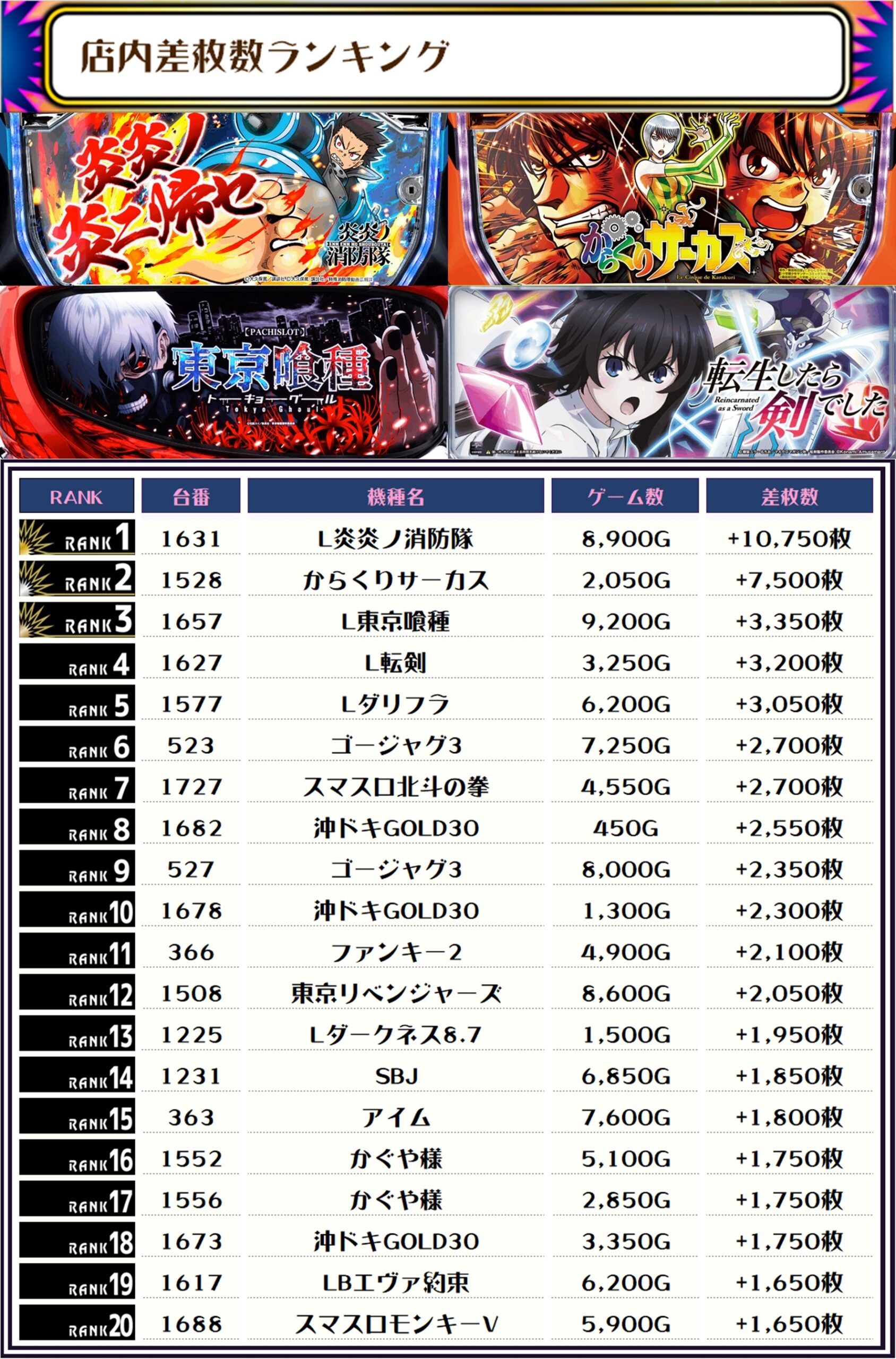 2位には同じく【からくりサーカス・1528番台】の+7,500枚、3位には【L東京喰種・1657番台】の+3,350枚がランクインっ🏆🏆🏆🏆