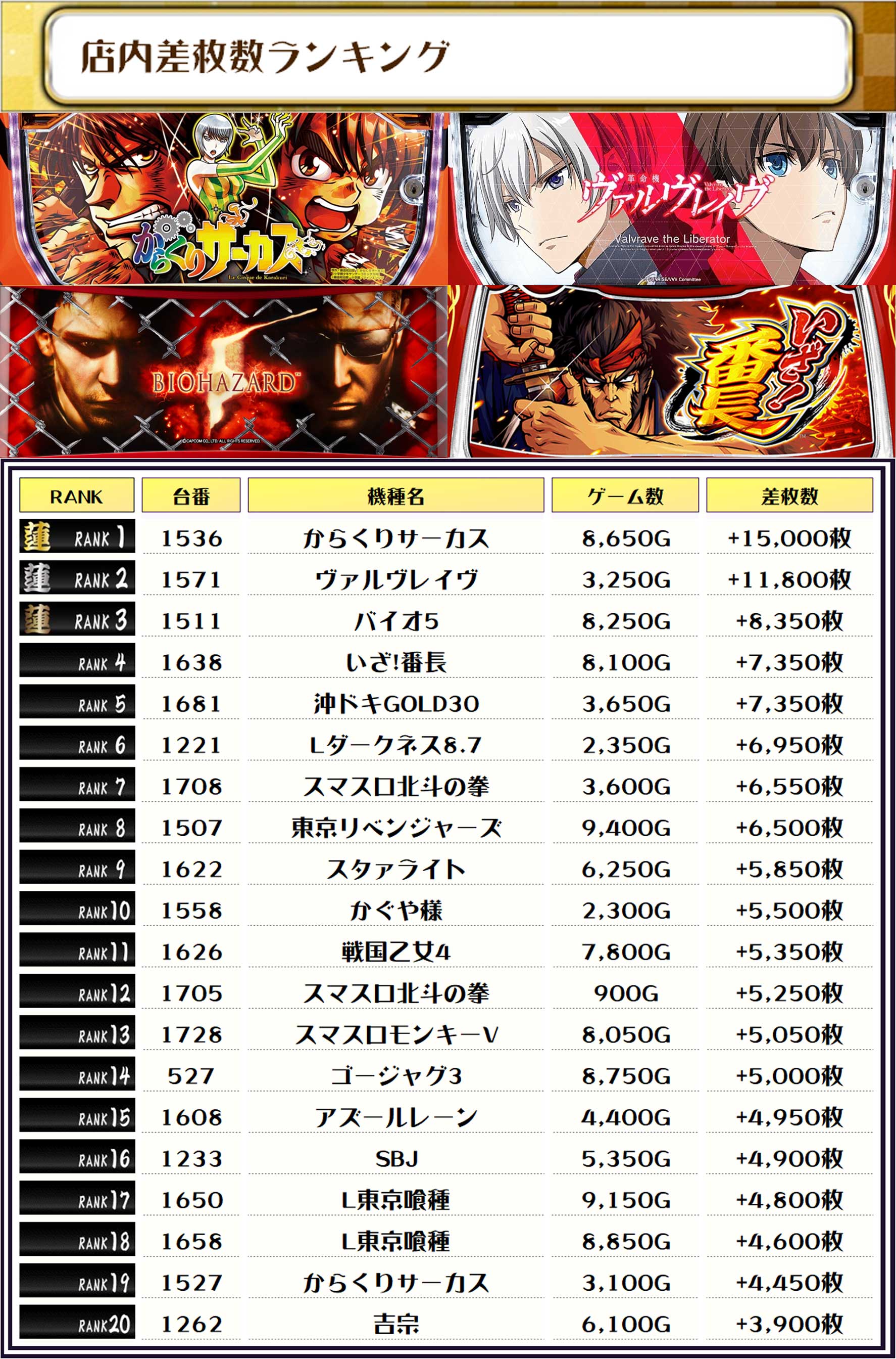 ということで、この日の店舗全体差枚数ランキングがこちら❗️