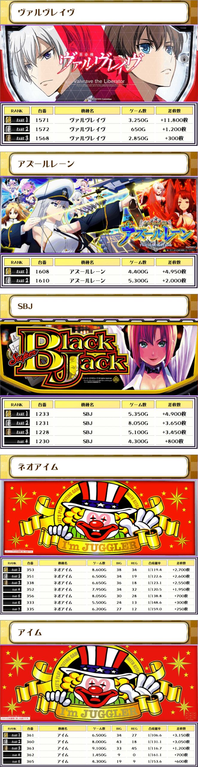 それでは、この日の【機種別差枚ランキング】を見ていきましょう❗️
