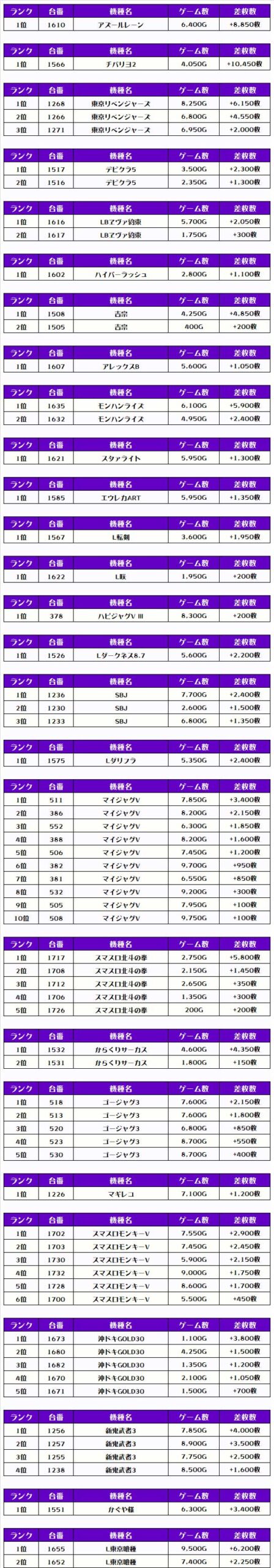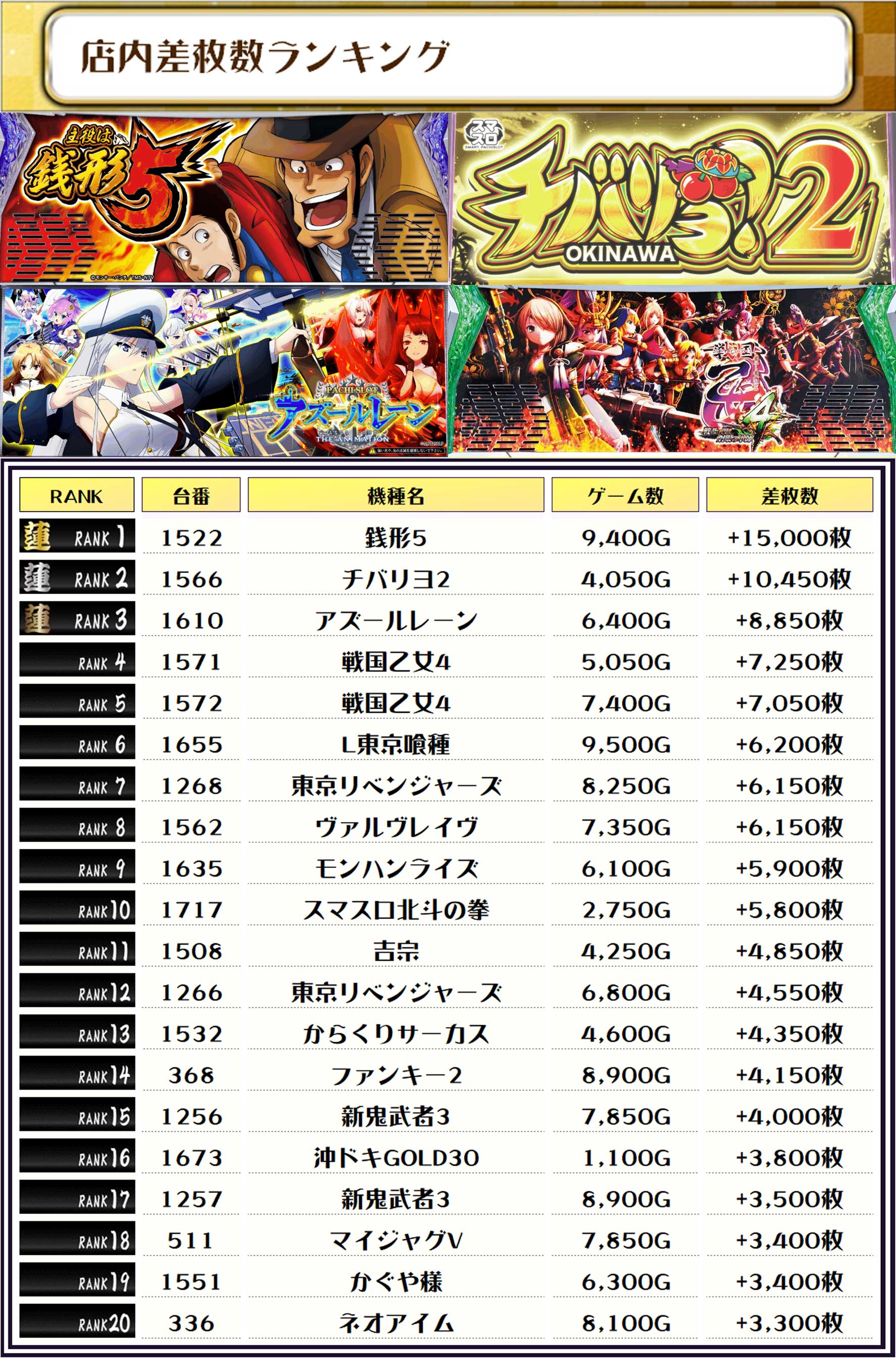 それでは、この日の【機種別差枚ランキング】を見ていきましょう❗️
