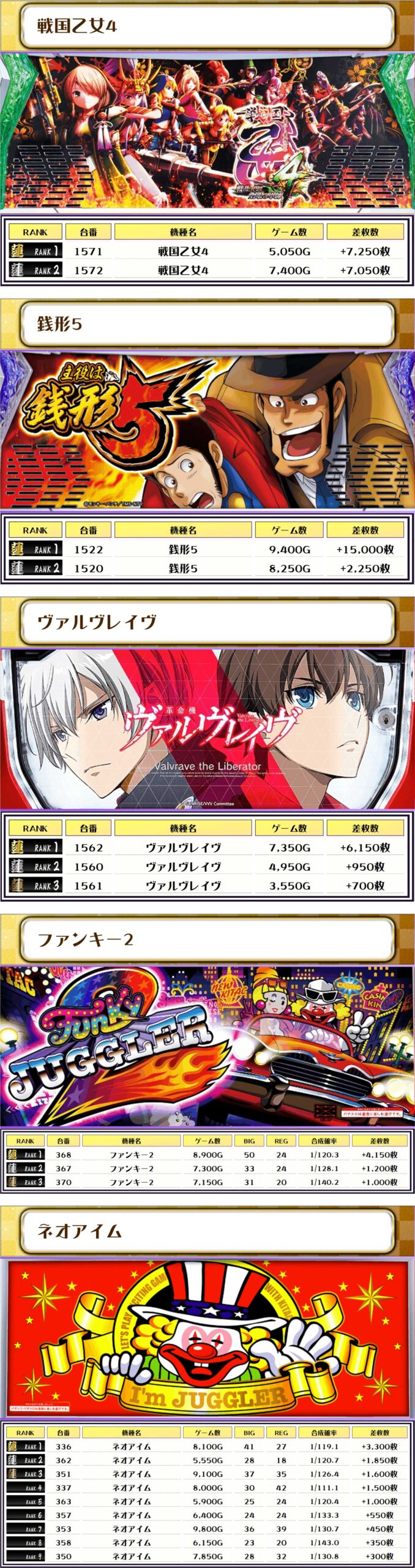 今回ピックアップした機種は優秀台が並びであったと思われる候補になります‼️