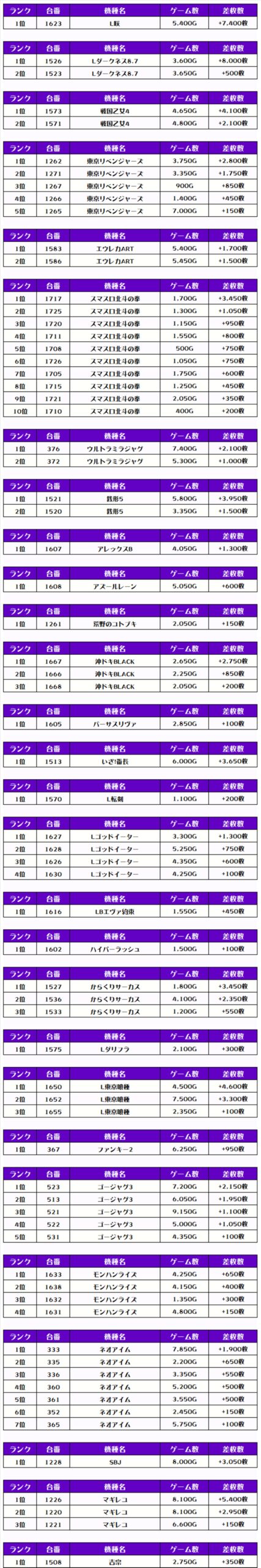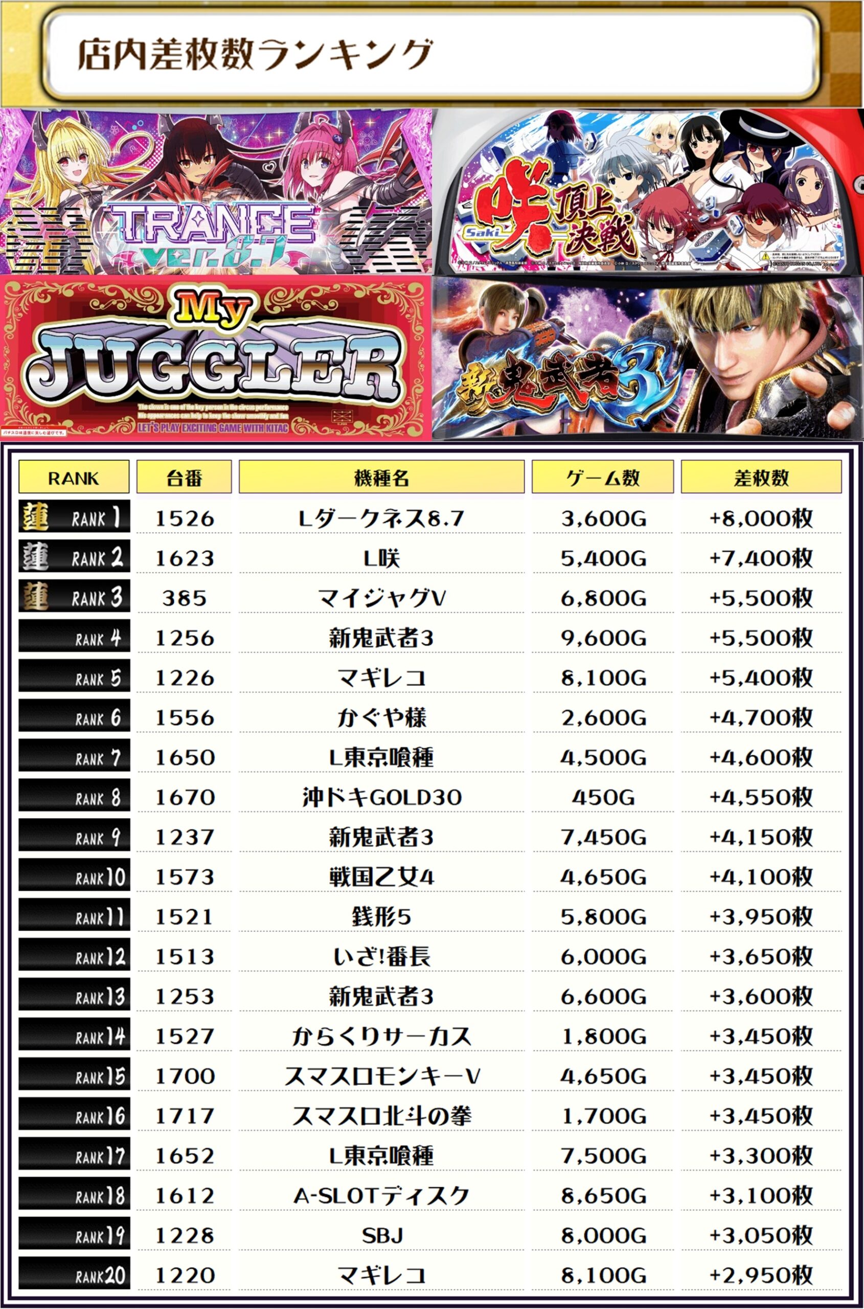 それでは、この日の【機種別差枚ランキング】を見ていきましょう❗️