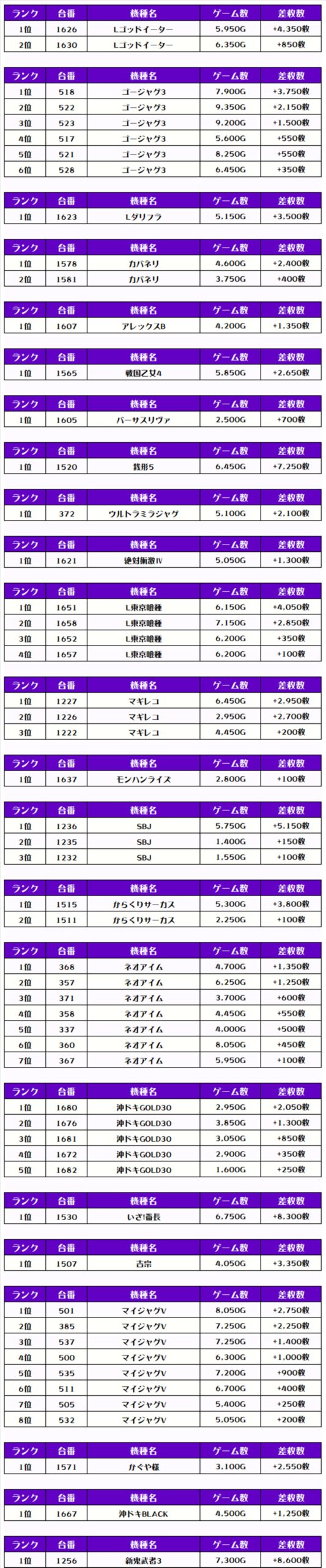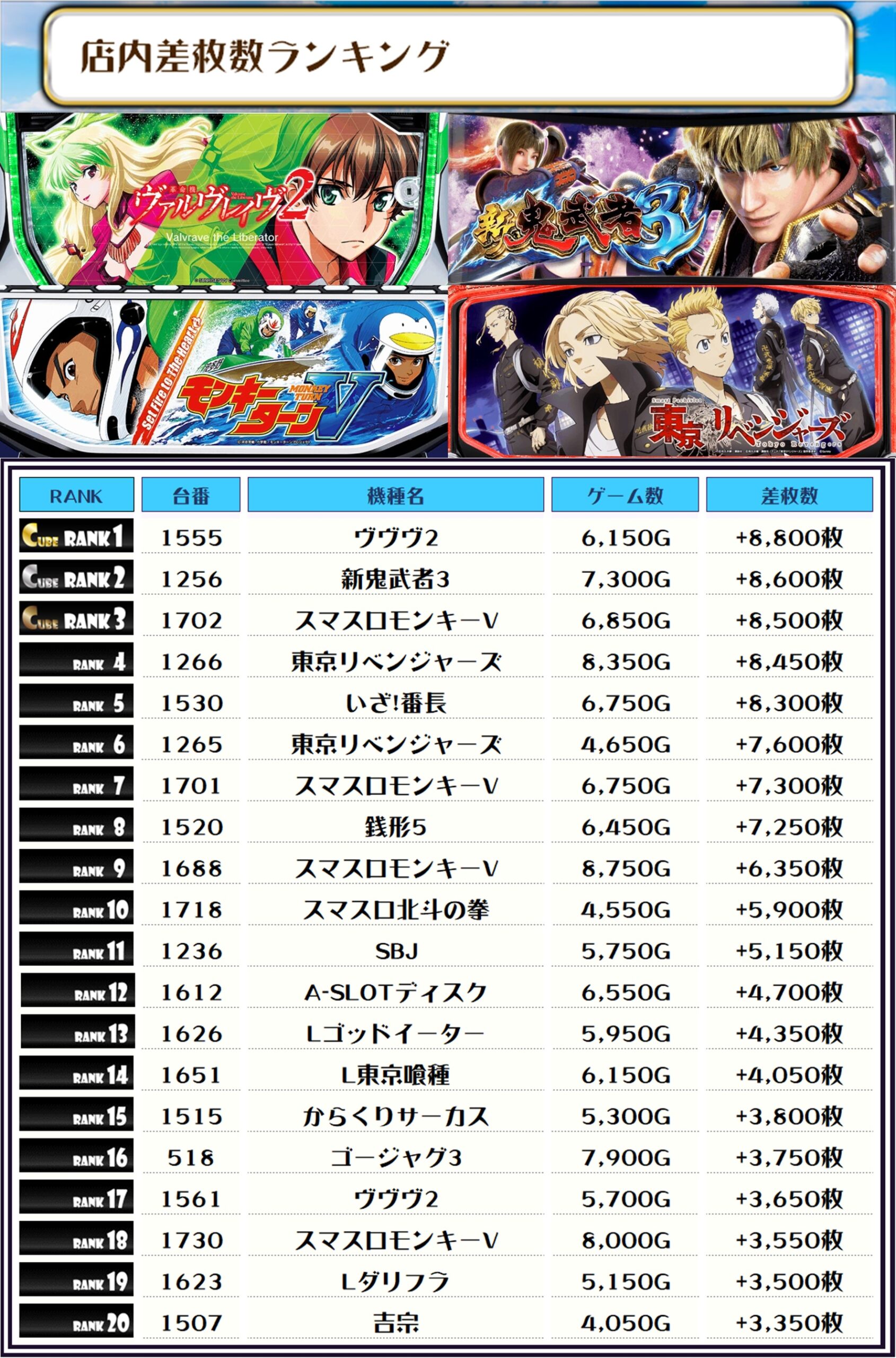 最後に、この日の店内差枚ランキングでやんすっ❗️