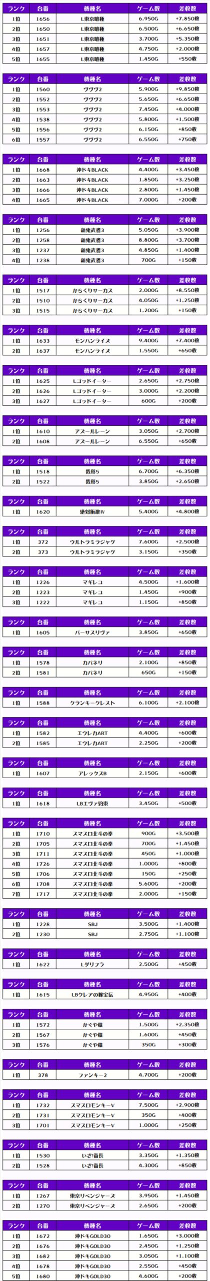 2位には【からくりサーカス・1517番台】の+8,550枚、3位には【L東京喰種・1656番台】の+7,850枚がランクインっ🏆🏆🏆🏆