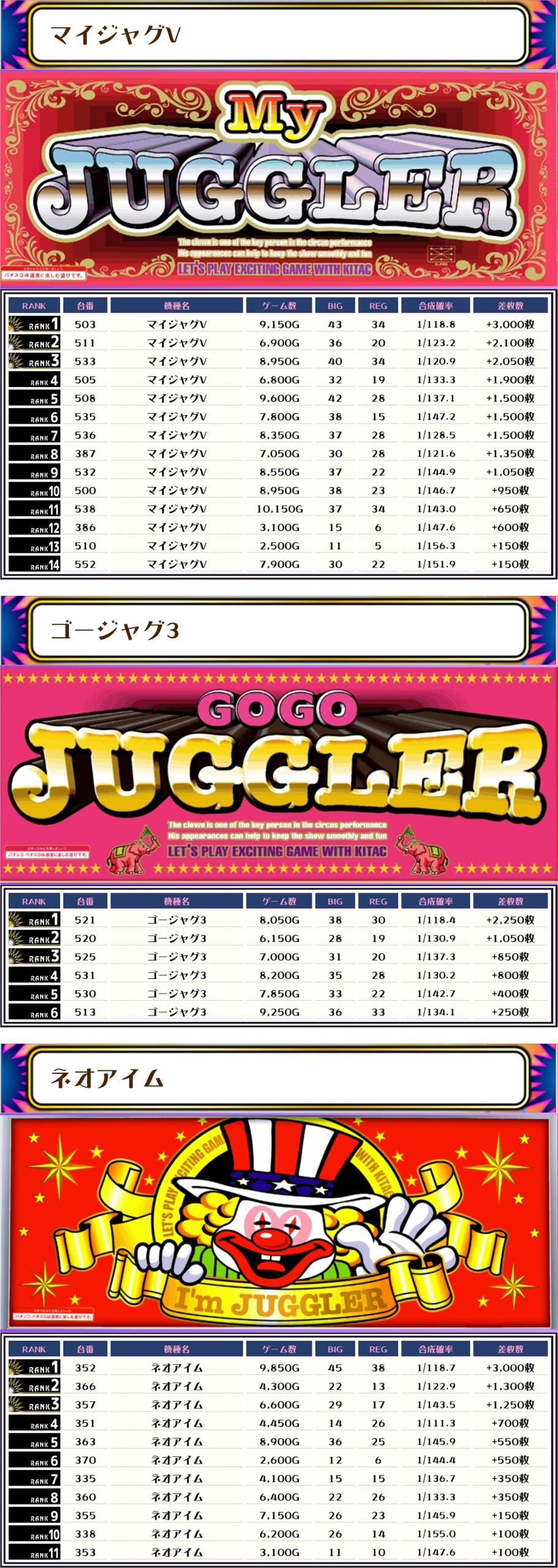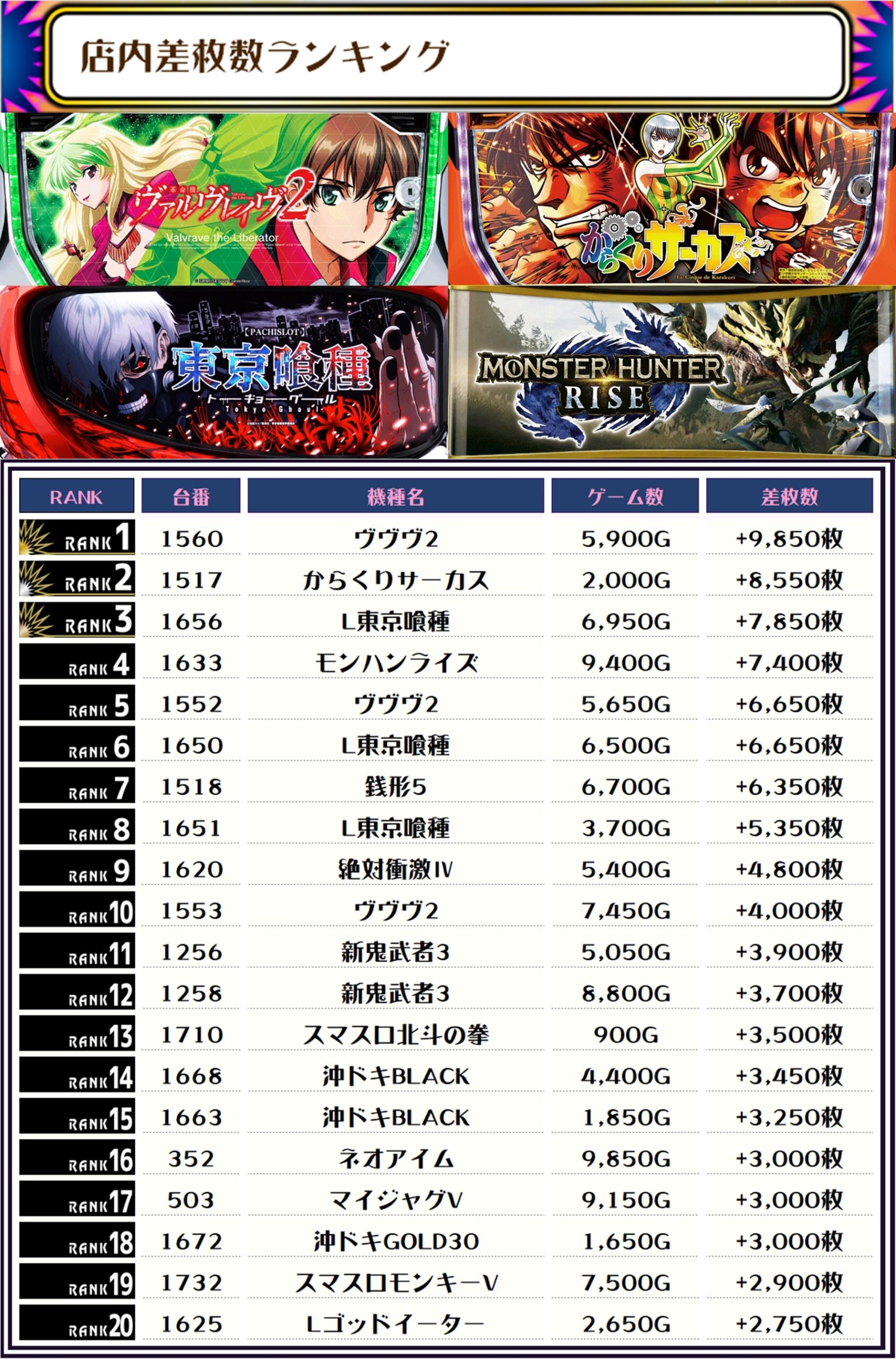 それでは、この日の【機種別差枚ランキング】を見ていきましょう❗️